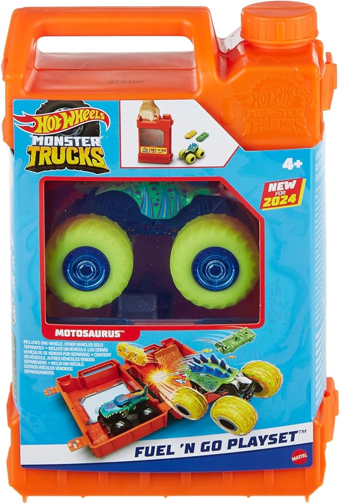 - Заправляйтеся епічними пригодами з набором Hot Wheels Monster Trucks Fuel and Go.