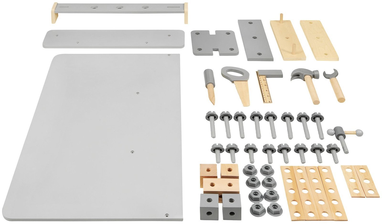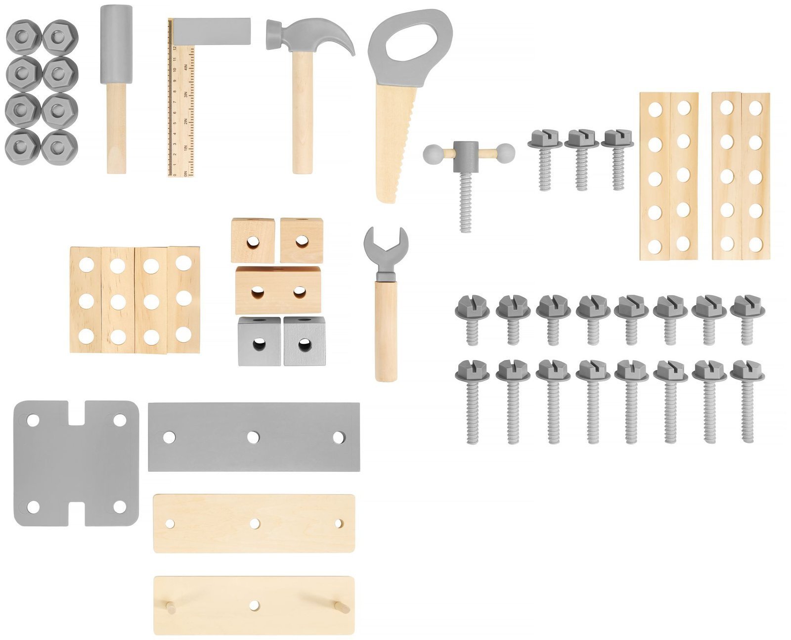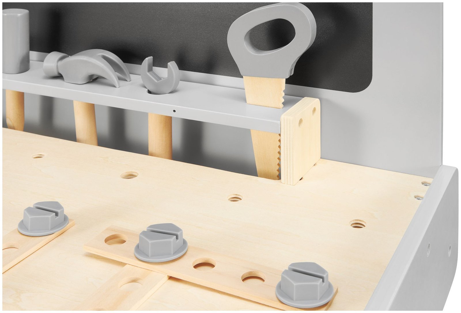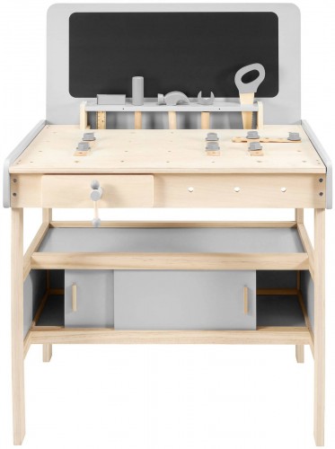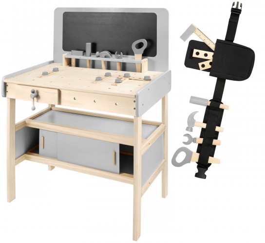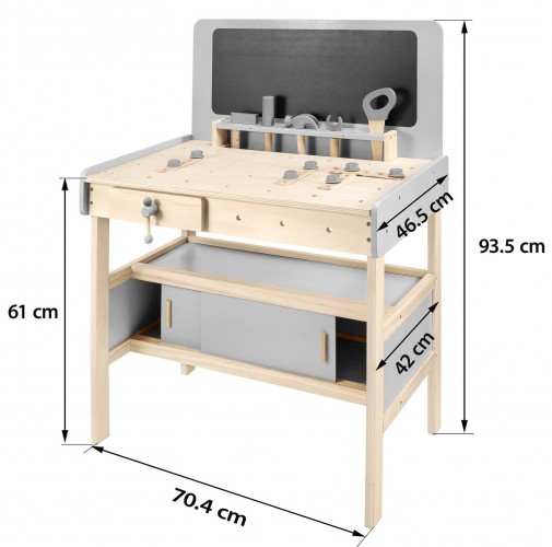 Столярский стол Mamabrum XXL с меловой доской - идеальное предложение для домашнего помощника, который не боится ни одной работы! Это идеальное место для длительных развлечений и обучения. Изготовлен из крепких материалов. Бережно воспроизведена маленькая мастерская для ваших малышей, оснащена оригинальными инструментами, которые были в мастерской папы или дедушки. Инструменты изготовлены из дерева и абсолютно безопасны во время игры. Большая мастерская с очень богатым оборудованием будет стимулировать врожденный талант каждого ребенка к мастерству! Столешница имеет сетку отверстий, размер и расстояние которых адаптированы к прикрепленным аксессуарам.