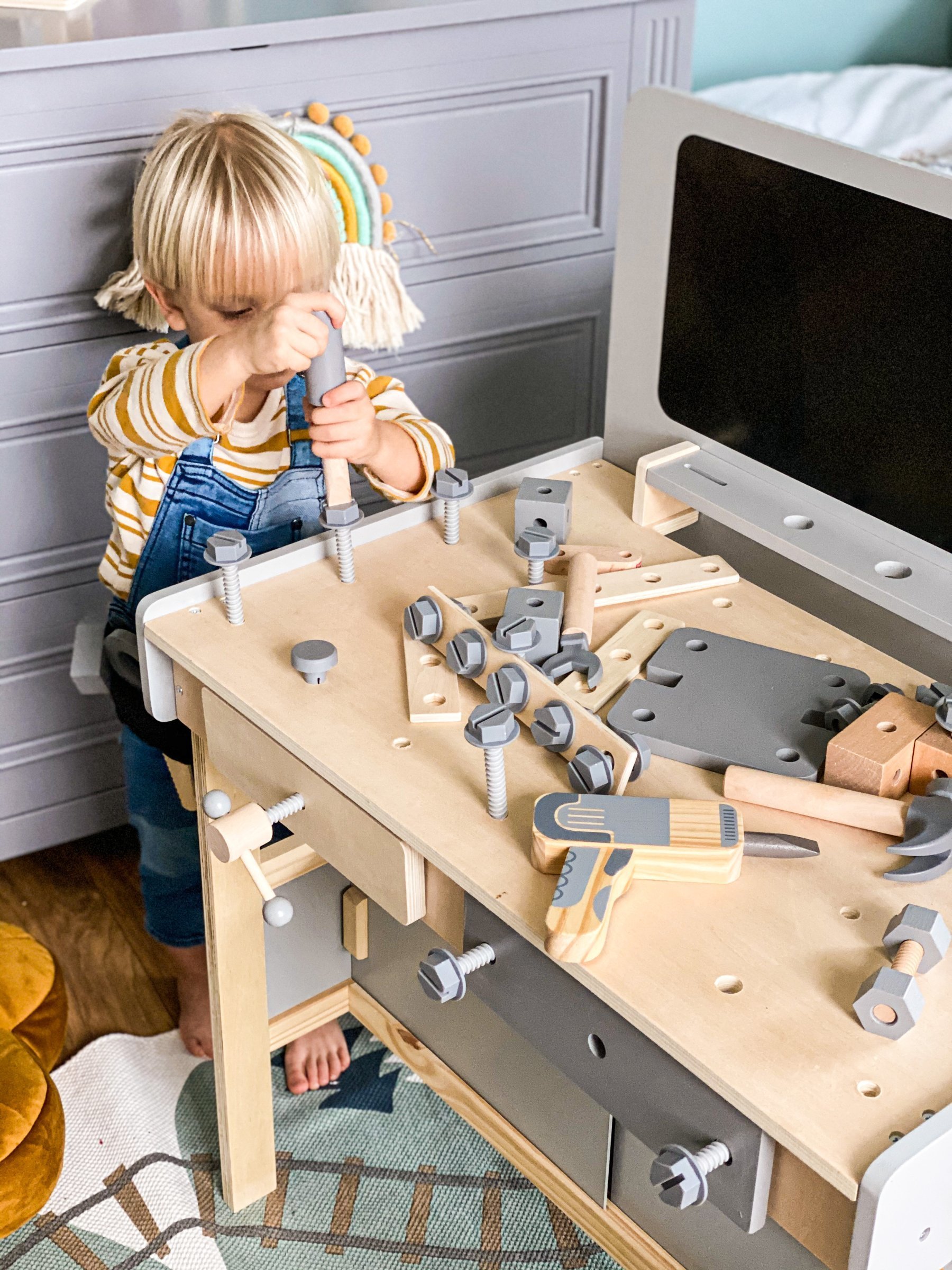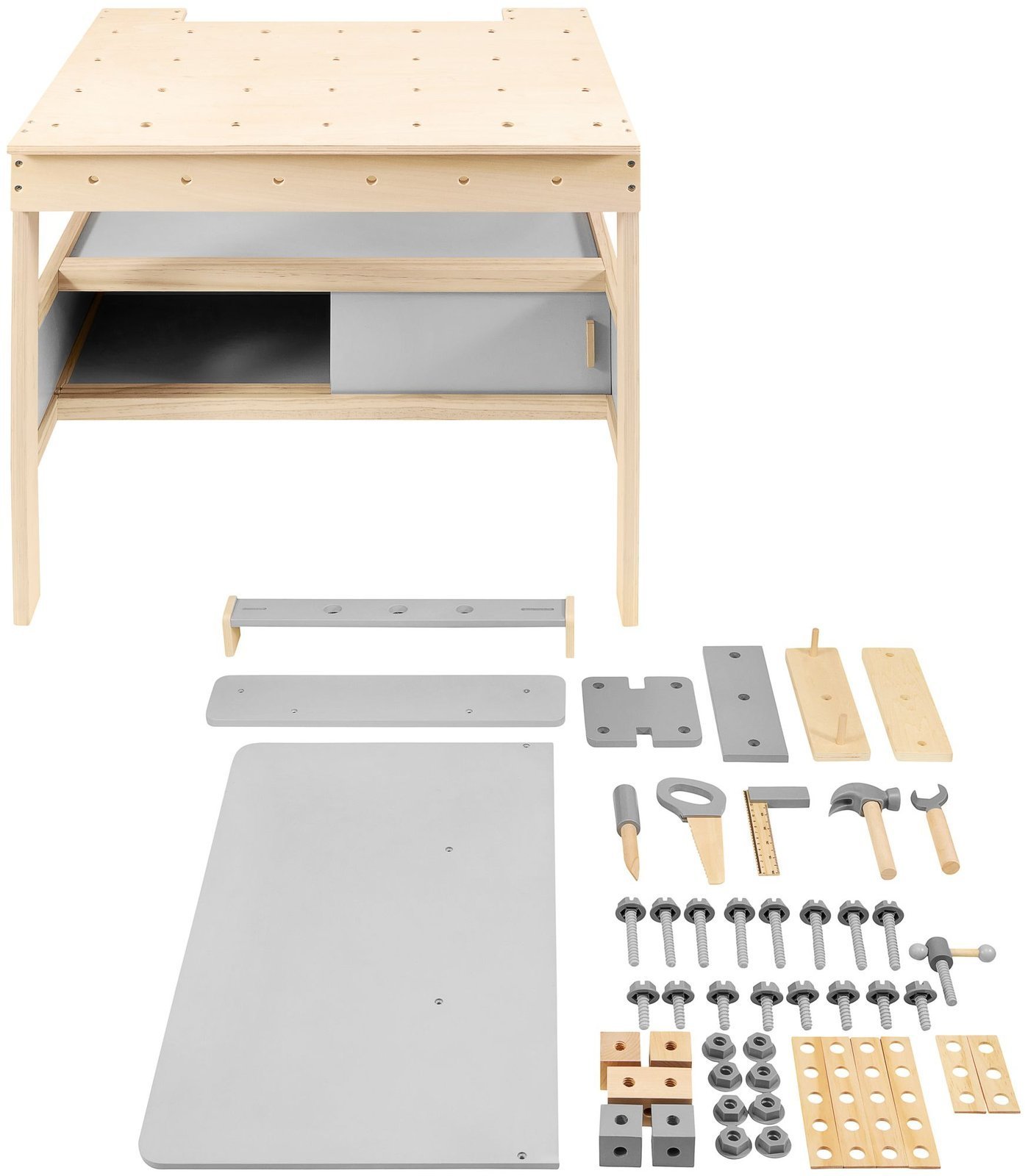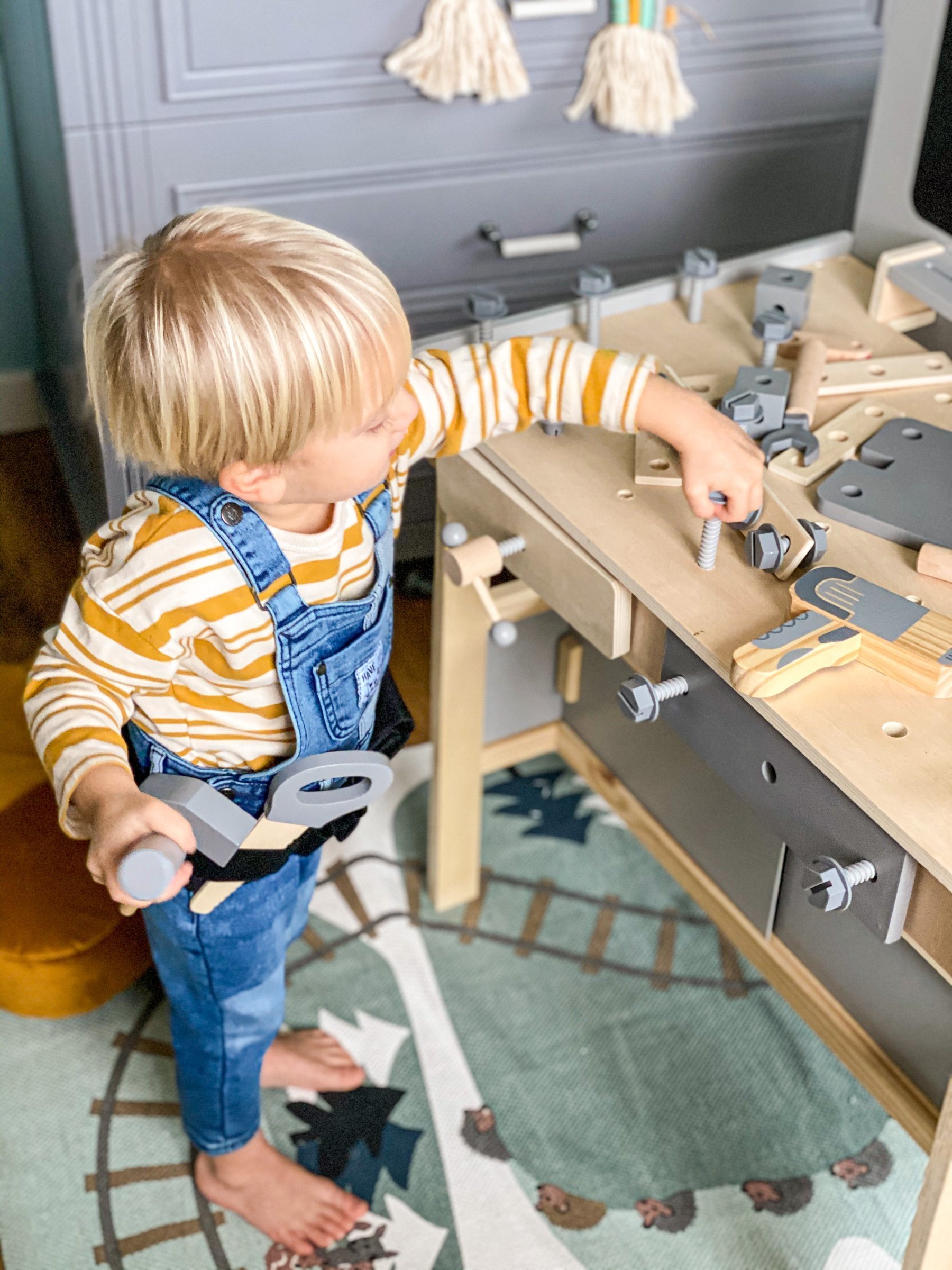 Столярский стол Mamabrum XXL с меловой доской - идеальное предложение для домашнего помощника, который не боится ни одной работы! Это идеальное место для длительных развлечений и обучения. Изготовлен из крепких материалов. Бережно воспроизведена маленькая мастерская для ваших малышей, оснащена оригинальными инструментами, которые были в мастерской папы или дедушки. Инструменты изготовлены из дерева и абсолютно безопасны во время игры. Большая мастерская с очень богатым оборудованием будет стимулировать врожденный талант каждого ребенка к мастерству! Столешница имеет сетку отверстий, размер и расстояние которых адаптированы к прикрепленным аксессуарам.