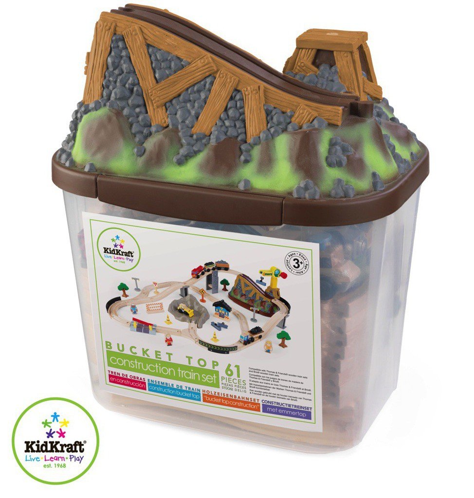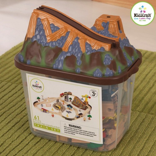 Железная дорога KidKraft Bucket Top Construction 17805 - компактный набор в удобном контейнере в форме горы, после веселья нет ничего проще, чем собрать элементы в контейнер. На следующий день веселье снова начинается - ваш малыш снова может исследовать мир со своим поездом.