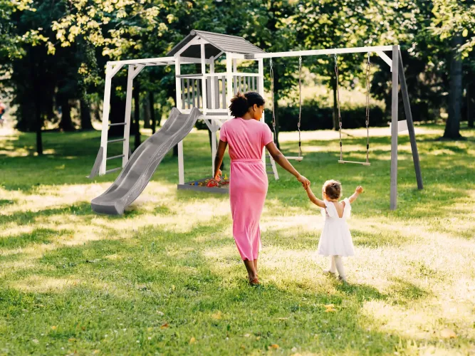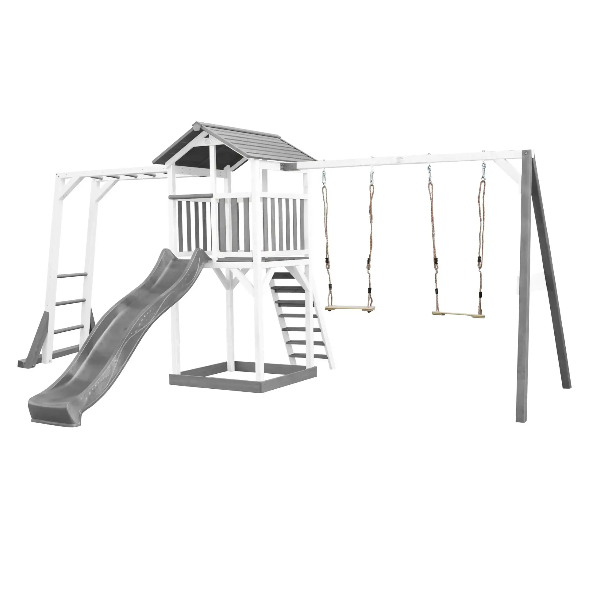 Деревянная детская площадка AXI Beach Tower с лазальным каркасом и двойными качелями А025.132.82 - создает впечатление, будто ваши дети находятся в настоящем пляжном домике. Лазка, катание на горках и качели – любимые развлечения маленьких детей. И все это возможно с этой пляжной башней. Невозможно не развлекаться с ней часами в прекрасный солнечный день. Пляжная башня изготовлена из 100% древесины тсуги FSC, которая также из лесов, руководствующихся принципами устойчивого развития, что делает ее экологически сознательным выбором. Эта порода древесины не раскалывается и естественно устойчива к погодным условиям, таким как дождь, а следовательно, устойчива к гниению. Древесина обработана морилкой на водной основе, что делает ее практически не требующей ухода. Эта натуральная морилка не загрязняет окружающую среду и безопасна для детей (без химикатов). С 10-летней гарантией вы и ваши дети сможете наслаждаться ею долгие годы.