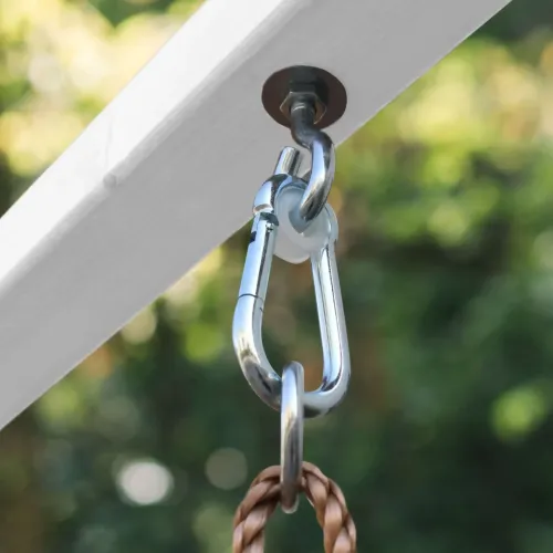 - Двойные качели с двумя регулируемыми по высоте деревянными сиденьями.