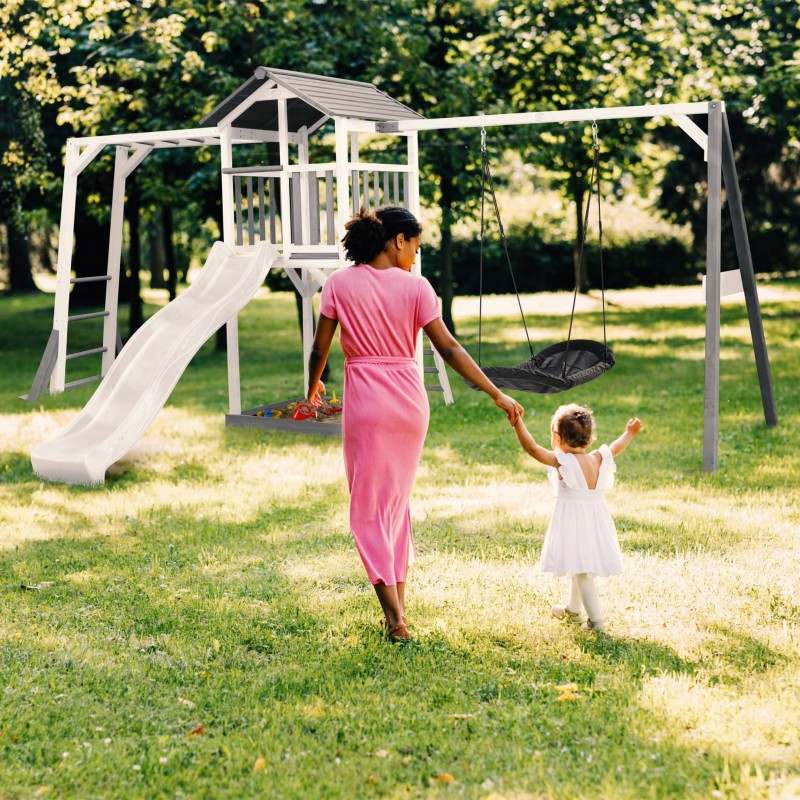 Деревянная детская площадка AXI XXL А025.134.92 – это прекрасное место для игр детей, которые любят играть в саду! Детская площадка состоит из качелей, горок, а также места для лазания, исследования и творческой игры в песочнице. Прочная конструкция, натуральные материалы и безопасная отделка делают его инвестицией на долгие годы!