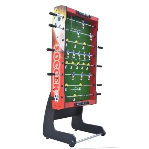 Игровой футбольный стол для детей и взрослых Ramiz – прекрасная идея для подарка на Рождество или день рождения. В играх сможет поучаствовать вся семья и сверстники. Стол рассчитан на 2-8 игроков, но при большем количестве людей вы можете превратить соревнования в турнир. В настольный футбол могут играть дети от 6 лет и старше. Мячом управляют жабрами – специальными горками, к которым крепятся фигурки игроков. В набор входят 2 команды в бело-синей и черно-желтой форме. Каждая команда отвечает за 4 горки, которые можно отталкивать, притягивать и вращать, изменяя положение игроков. Поле разделено, как настоящий газон, на 4 зоны – защита, полузащита, нападение и ворота. В каждой зоне нужно выполнять разные задачи. В защите цель – заблокировать удар соперника и выбить мяч в зону атаки. Оттуда можно пробить прямо в ворота соперника. Вратарь, стоящий на воротах, пытается не пропустить мяч. Побеждает команда, которая забьет больше голов.Стол и его аксессуары обладают многими функциями, которые делают игру еще более приятной. К ним относятся 2 счетчика голов, на которых счет можно менять вручную во время матча. Фигуры игроков расширены в месте, куда чаще всего попадает мяч, чтобы было легче попасть по мячу. Слайды с безопасными телескопическими ручками – самые удобные. Направляющие хорошо сделаны для плавных движений. Для безопасности они имеют фиксирующий механизм максимального разворота ручек. Ручки направляющих покрыты специальным перфорированным материалом, предотвращающим скольжение рук. На конце жабр также добавлен защитный резиновый колпачок. МДФ-плита, из которой изготовлен стол для настольного футбола, является очень крепким и долговечным материалом, который позволит беззаботно играть. Кроме того, доска покрыта гибким ламинатом, устойчивым к царапинам и мелким повреждениям. Эта модель стола имеет возможность складываться в вертикальное положение, поэтому занимает очень мало места, когда не используется. Он также имеет колесики, чтобы его можно было легко транспортировать в нужное место. Устойчивая конструкция опирается на прочные ножки, укрепленные перекладинами. В комплект входят 2 хорошо сбалансированных мяча.