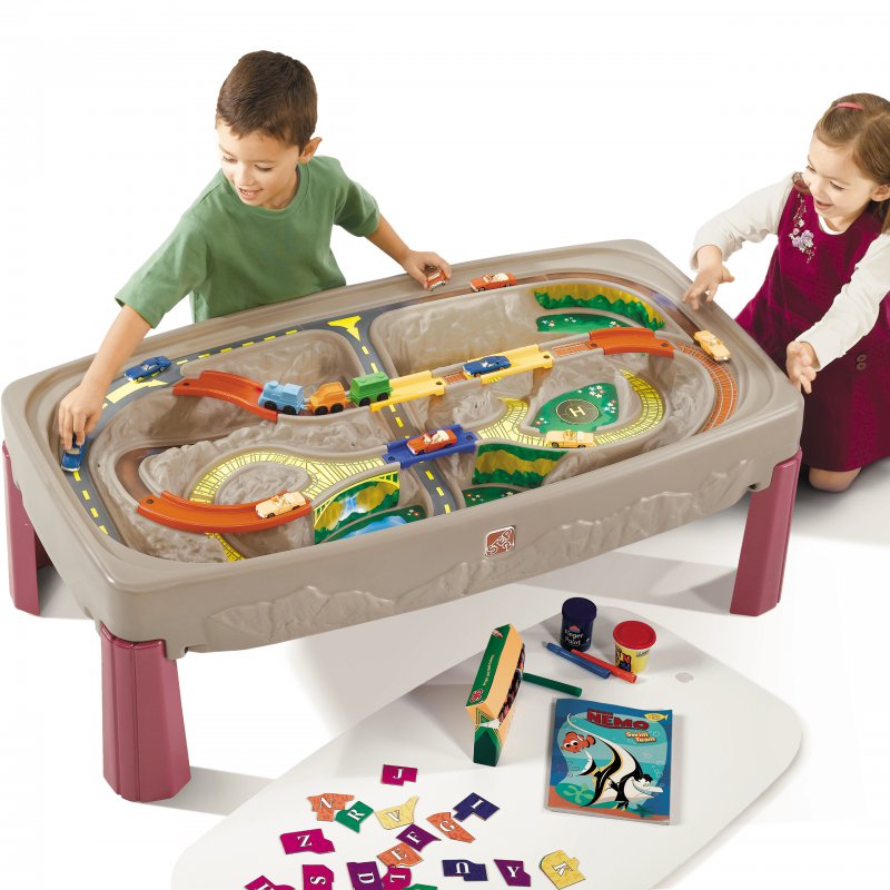 Игровой стол STEP2 Canyon автомобильный трек и поезд 7547 – большой удлиненный стол от известной американской компании STEP2 – отличная игрушка, создающая множество возможностей для игры ребенка с игрушечными машинками и другими транспортными средствами. Он оснащен многоуровневым литым треком и несъемными мостиками, поэтому вам больше никогда не придется переставлять детский трек! Это поможет маленьким машинистам развивать свои социальные навыки, когда они будут делиться поездами и путями с друзьями и братьями и сестрами. Гладкая крышка превращает его в столик для рукоделия и перекусов.