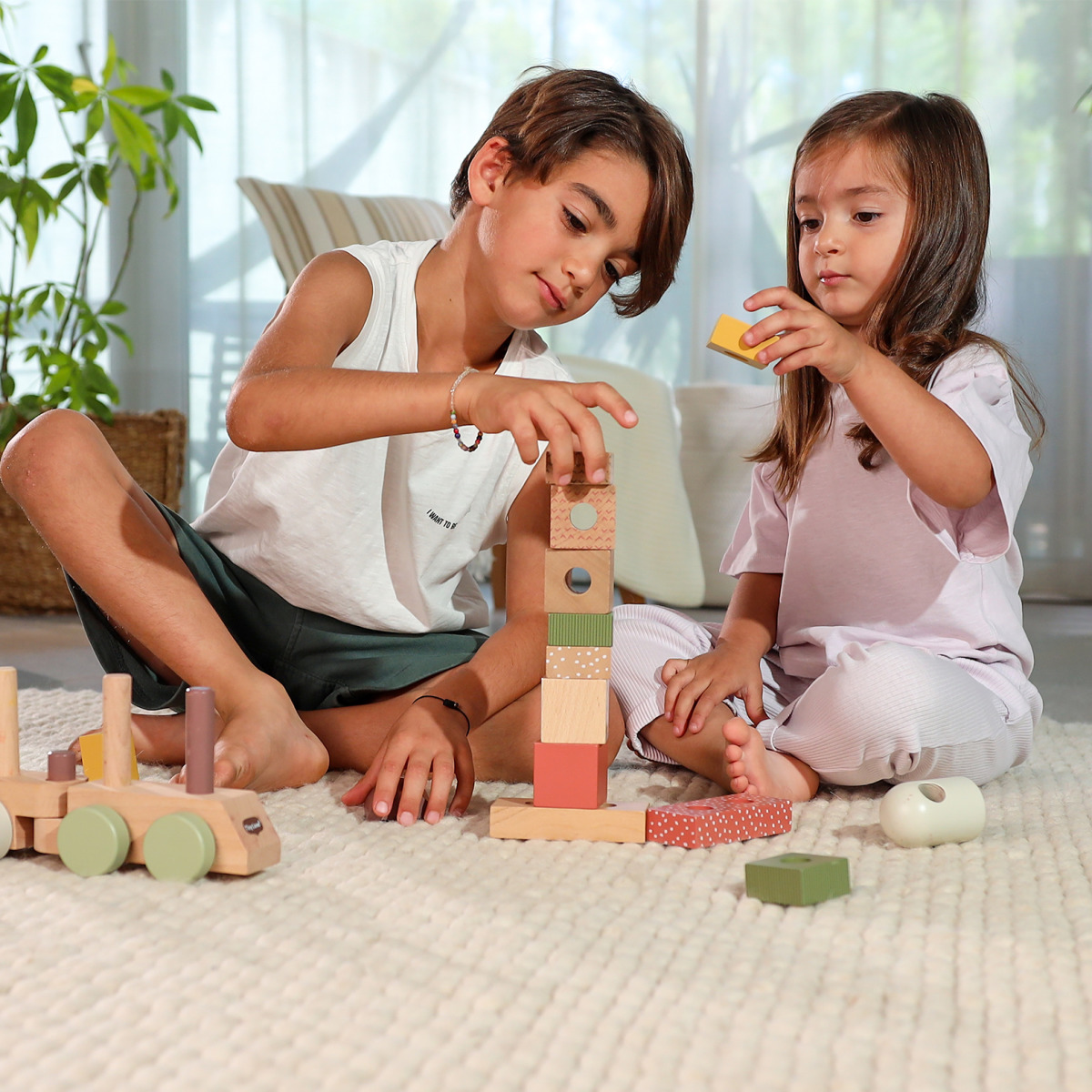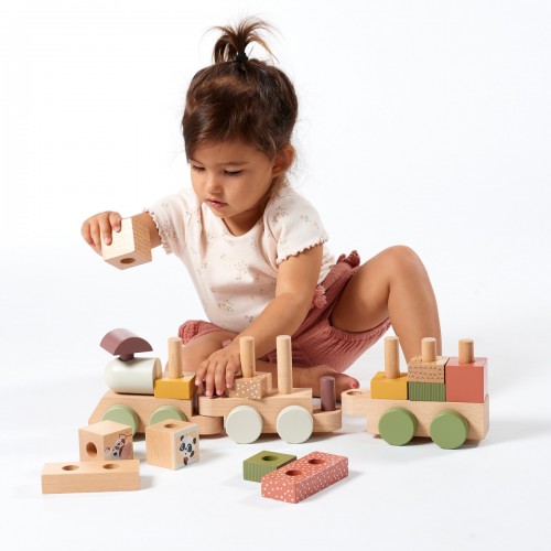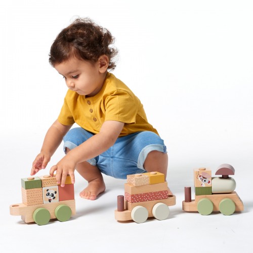 Деревянные пазлы-поезд Tiny Love Boho Chic - в поезде 3 вагона, составленные из блоков различной формы и цвета. Ребенок может построить поезд с вагончиками, используя разноцветные блоки, но также может свободно расположить их в соответствии со своим воображением. . Идеально подходит для подарка. Дайте волю воображению вашего малыша с развивающей деревянной креативной игрушкой для сборки.