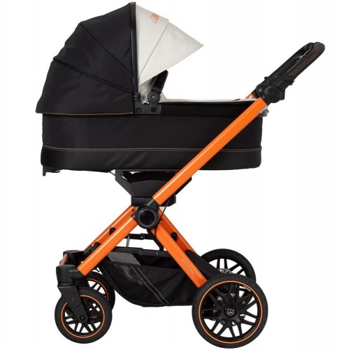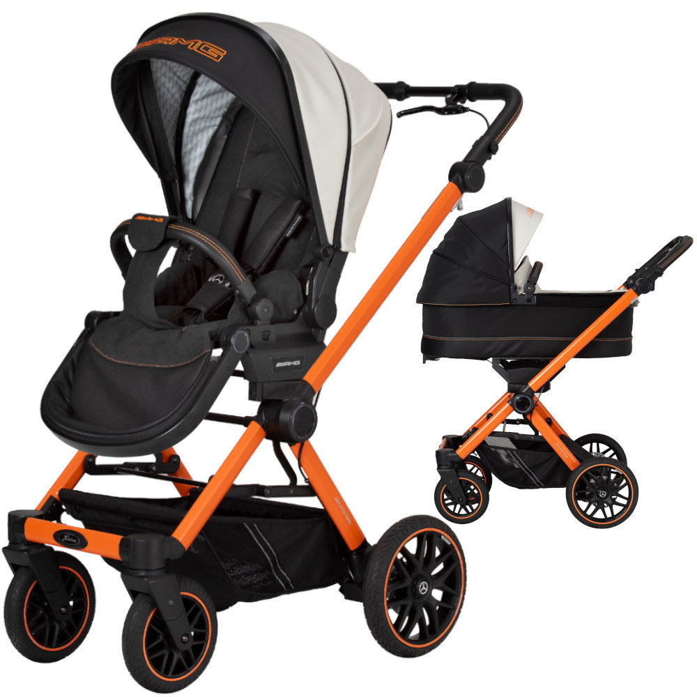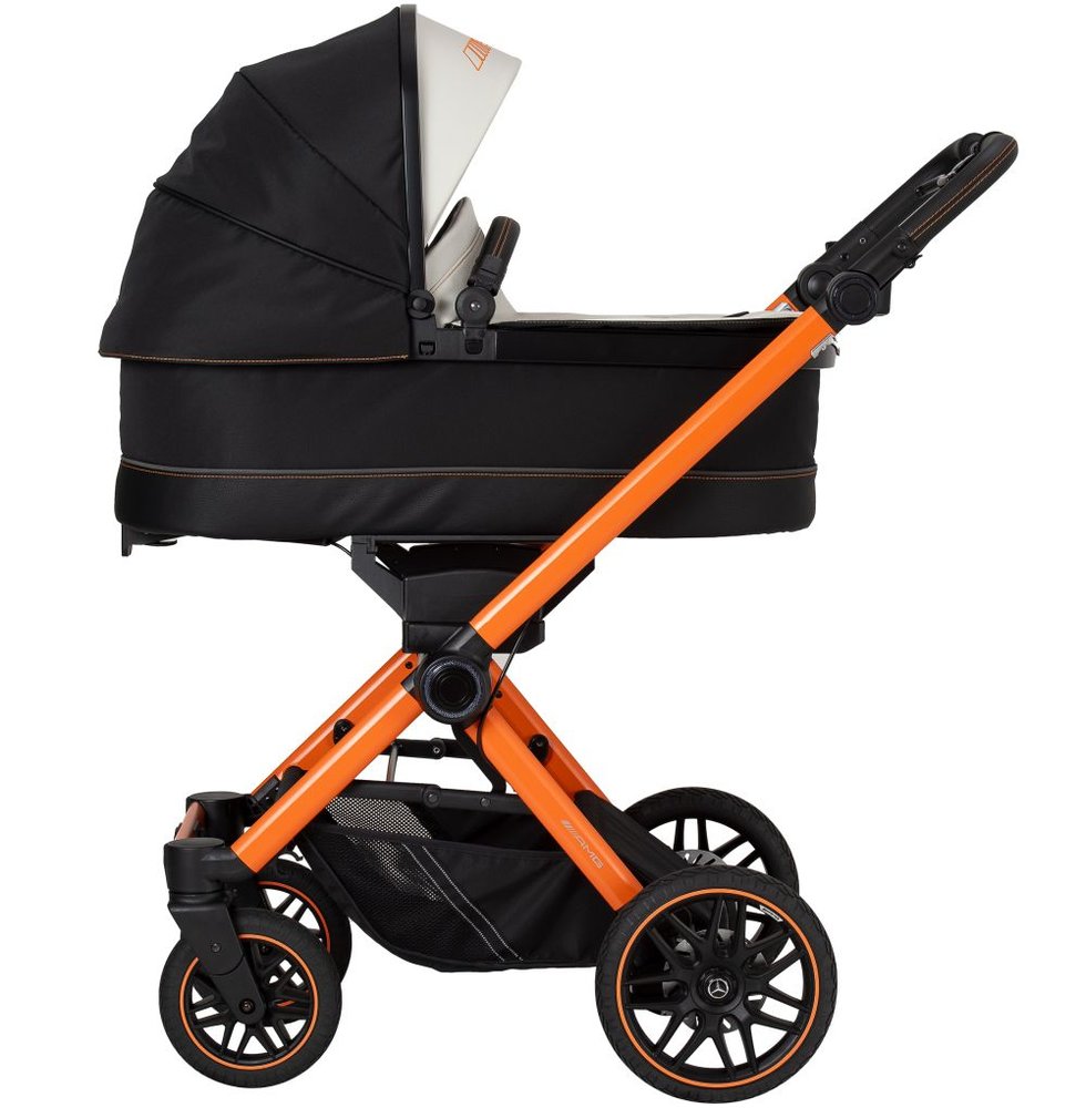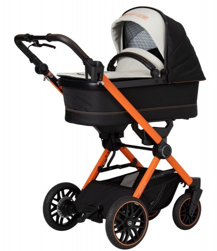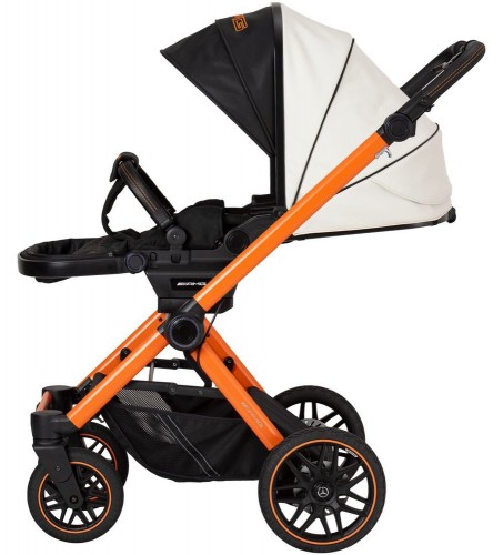 Коляска 2в1 Hartan Mercedes-Benz AMG GT² - AMG запускает свою первую коллекцию детских колясок в стиле звучащих автомобилей. При поддержке команды дизайнеров Mercedes-Benz, AMG и Hartan объединились, чтобы создать уникальную модель коляски, сочетающую в себе спортивность, гибкость и максимальный комфорт езды очень особенным способом. Дизайнеры проделали огромную работу. Сидение реверсивное и имеет регулируемую спинку, в том числе и в положении полулежа. Другие полезные функции включают в себя регулируемую по высоте подножку, раскладной капюшон для дополнительной защиты от солнца, включая климатическую зону, бампер безопасности с фиксатором и функцией вставки, а также регулируемую по высоте ручку с высококачественной декоративной строчкой, координируемой по цвету. Коляска AMG GT² имеет не только чрезвычайно малый размер в сложенном виде, но и поворотные колеса, хорошо чувствующие себя на любой местности. Колеса с перекрестными спицами в оригинальном дизайне AMG представляют собой визуальную изюминку. AMG GT² также располагает всем необходимым с точки зрения комфорта. Сидения и откидная поверхность с любовью изготовлены вручную. Сидение реверсивное и имеет многоступенчатую регулировку спинки, в том числе и в положении полулежа. Другие полезные функции включают регулируемую по высоте подножку, раскладывающийся козырек для дополнительной защиты от солнца, включая климатическую зону, перекладину безопасности с фиксатором и функцией вставки, а также регулируемую по высоте ручку для переноски с высококачественной декоративной строчкой в тон автокресла. Благодаря соответствующему адаптеру (аксессуар) можно использовать детские автокресла. Как и положено настоящей спортивной коляске, модель в стандартной комплектации оснащена ручным тормозом и 5-точечными ремнями безопасности. AMG GT² можно использовать с самого начала со складывающейся люлькой "Premium". вставками и красной прострочкой. При изготовлении коляски используются специальные ткани Dinamica – такие же, как и в автомобилях AMG. На трубке и прогулочном блоке произведена вышивка логотипов AMG.