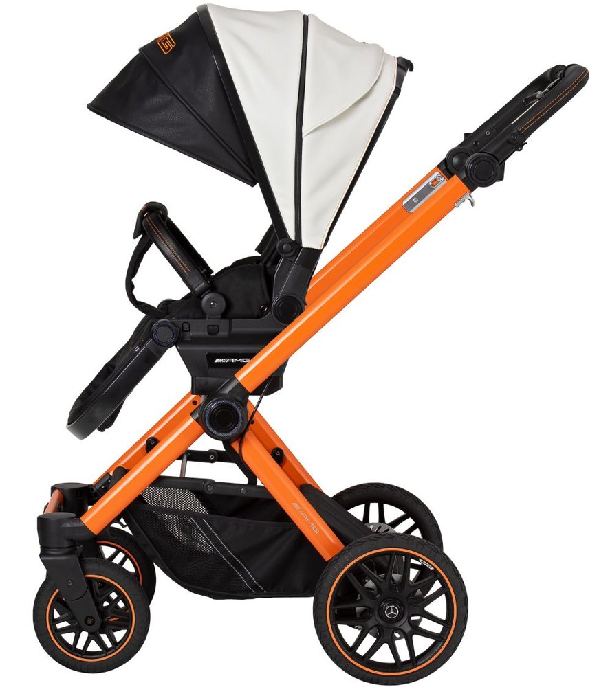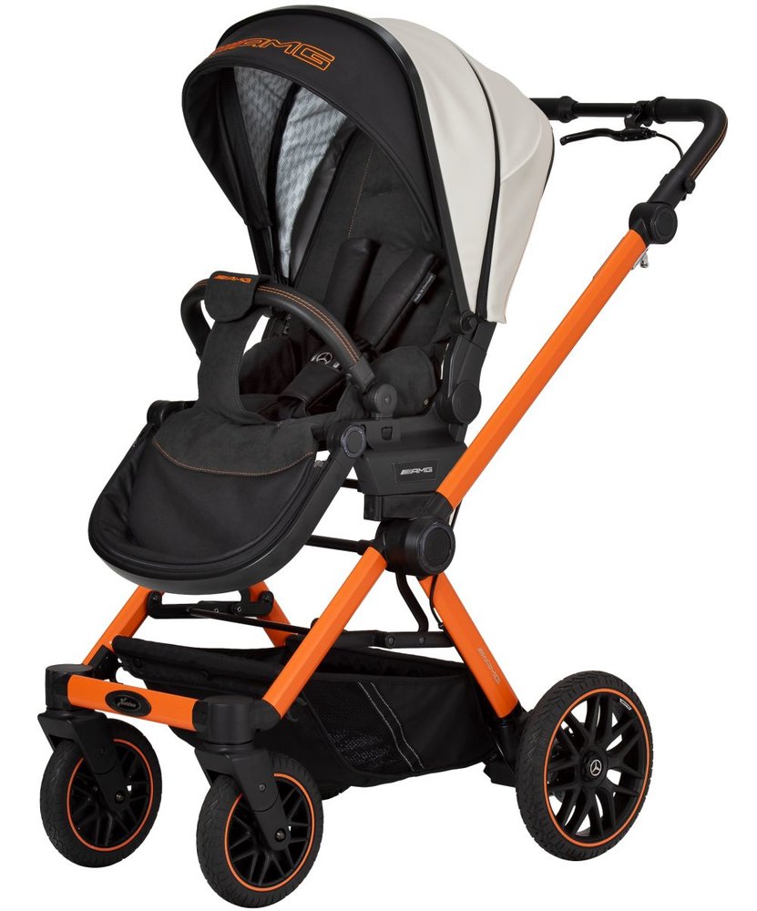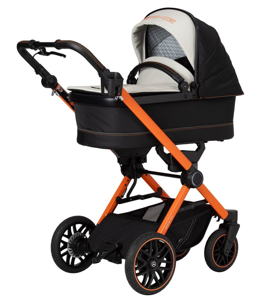- 5-спицевые колеса коляски выполнены в дизайне AMG, как у настоящих спорткаров.