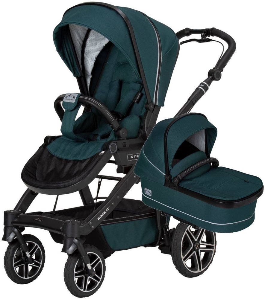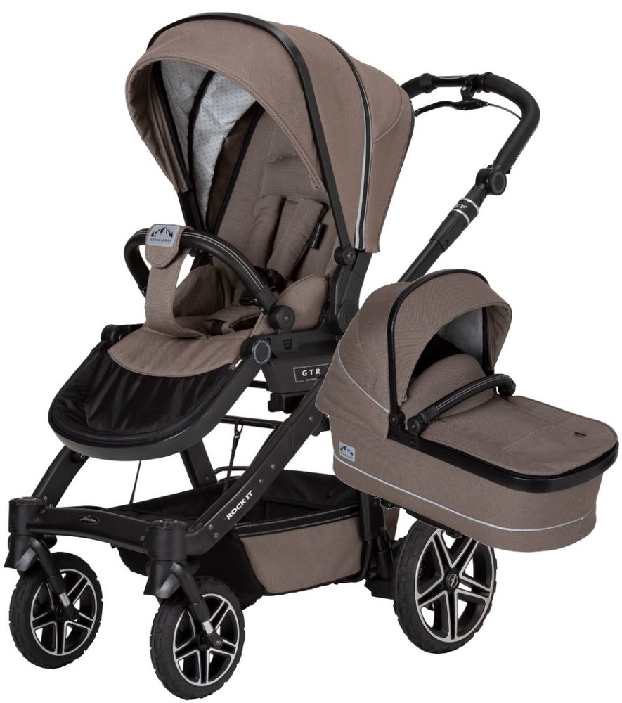 Коляска 2в1 Hartan Rock IT GTR Outdoor - оснащена сверхлегкими колесами на шарикоподшипниках с воздушной камерой, шипованными шинами и шипованным протектором, коляска Rock IT GTR обеспечивает максимальную проходимость по бездорожью. Сверхбольшие поворотные одинарные колеса с блокируемой подвеской обеспечивают комфортную езду по любой поверхности. Экологичность и функциональность играют очень важную роль в выборе тканей для коляски Rock IT GTR. Внутренняя подкладка изготовлена из 100% сертифицированного органического хлопка. Наружные ткани водоотталкивающие, быстросохнущие, износостойкие и сертифицированные Oeko-Tex. Застежка-молния в капюшоне также водоотталкивающая и светоотражающая – для дополнительной безопасности! Так что ничто не помешает приключениям на свежем воздухе. Сидение GTR можно быстро снять с рамы и установить в обратном направлении. Магнитные 5-точечные ремни безопасности и съемный защитный брус с функцией входа и замком обеспечивают оптимальную безопасность для самых маленьких. Многократно регулируемую спинку можно отрегулировать до горизонтального положения. Климатическая зона в капюшоне обеспечивает оптимальную циркуляцию воздуха в коляске. Также есть двойной раскладной солнцезащитный козырек, обеспечивающий оптимальную защиту от солнца для вашего малыша. Коляска Rock IT GTR также имеет удлиненную регулируемую по высоте подножку. Коляску Rock IT GTR Outdoor можно компактно сложить всего за несколько простых шагов, что превращает хранение и транспортировку коляски в детскую забаву. В течение первых нескольких месяцев к шасси можно прикрепить складную люльку Premium одним нажатием кнопки. Люлька имеет особенно легкую и эргономичную обивку. Особенностью трубки является выдвижная спинка, обеспечивающая дополнительный комфорт ребенку и родителям.