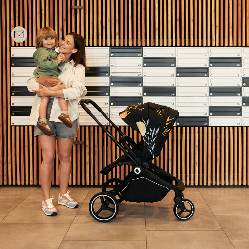 - Состоит тележка Lionelo 2 в 1 Mika одной рукой. Для этого не нужно снимать с рамы прогулочное сиденье.