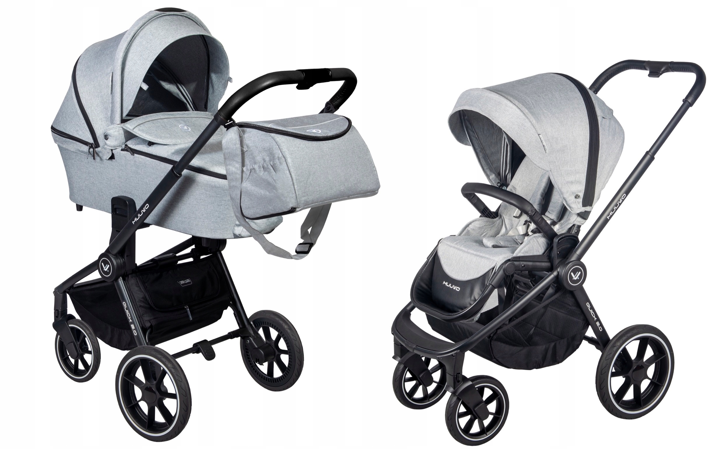 Коляска 2в1 MUUVO Quick 2.0 - была разработана с вниманием к мельчайшим деталям. Инновационный дизайн i,качество используемых материалов гарантирует удобство использования. Маневренная коляска Quick 2.0 с улучшенной амортизацией справится с любой местностью. Для нас также важен комфорт родителей, поэтому Quick 2.0 легкий - он весит чуть более 10 кг. Его легко сложить одной рукой, а удобная ручка позволят вам носите его как сумку. Muuvo Quick 2.0 - это коляска, созданная для родителей, которые ценят надежность и внимание к деталям. Каждый элемент коляски призван облегчить прогулку каждой мамы или папы.
