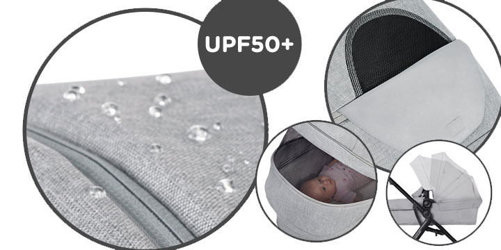 - A-Tour имеет просторный, складной солнцезащитный капюшон с фильтром UPF50+, созданный из пропитанных материалов с гораздо более высокой степенью водонепроницаемости.