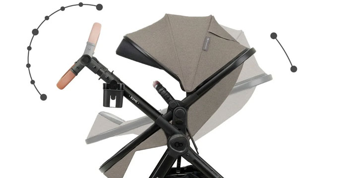 - 2-в-1 сиденье легко превращается из люльки в прогулочный блок всего в трех простых шагах. Это решение экономит место, обычно нужное для отдельной люльки.