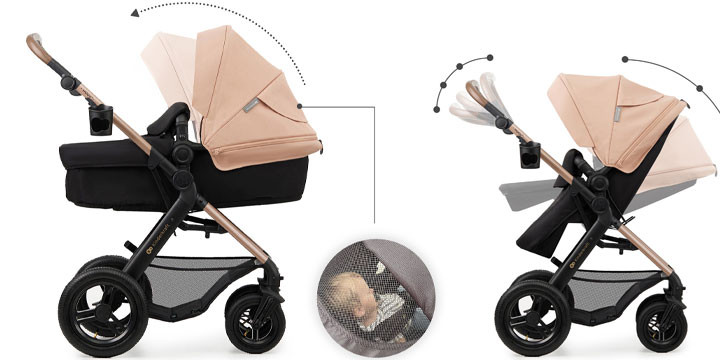 - Большая люлька с вкладышем: Комфорт с первых дней жизни благодаря мягкому вкладышу.