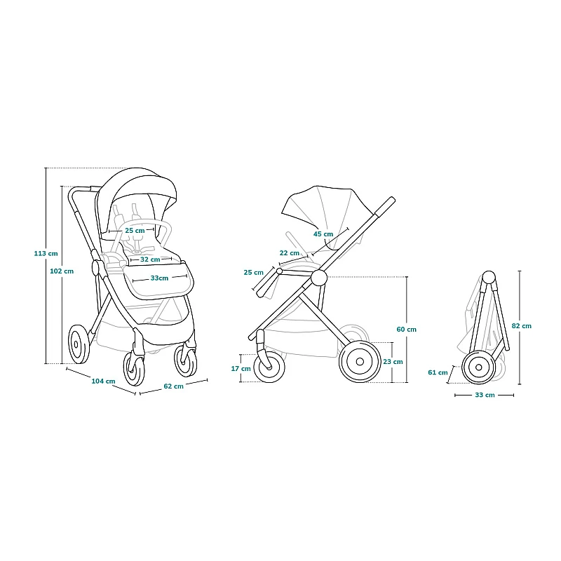 - размеры коляски в разложенном виде (ШхДхВ) 59 x 92 x 115 см