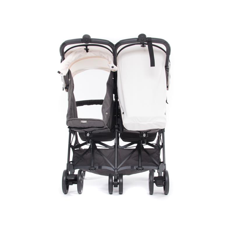 Прогулочная коляска для двойни Baby Monsters KUKI TWIN 2.0 – идеальный спутник в путешествиях. Возможность транспортировки коляски в специальном рюкзаке на плече в сочетании с низким весом (9,8 кг) делает перенос Baby Monsters Kuki Twin 2.0 более легким, чем другие коляски для двойни. Преимущества компактных размеров можно оценить и при передвижении по городским просторам. Как и в других колясках Baby Monsters, капюшон изготовлен из полиэстера с фильтром UPF 50+, обеспечивающим защиту от УФ-лучей.