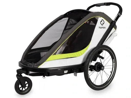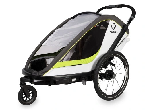 Велосипедный двухместный прицеп Hamax BREEZE - это новые, удобные и безопасные многофункциональные прицепы для перевозки детей в предложении Hamax. Прочная алюминиевая рама обеспечивает оптимальную защиту для детей и много места в салоне. Hamax Breeze можно использовать как велосипедный прицеп или как коляску. Индивидуальное наклонение – сиденье можно наклонять отдельно, чтобы один ребенок мог спать в расслабленном положении, а другой бодрствует и наслаждается видом. Тормоз на руле – легкодоступный тормоз поможет снизить скорость прицепа и будет особенно полезен во время ходьбы или бега по наклонным холмам. Съемные сумки – сумки крепятся к задней части прицепа. Они съемные, поэтому вы можете брать их в магазины, кафе и т.д. – или просто хранить другие необходимые вещи в дороге. когда внезапно ударит дождь. Hamax Breeze имеет удобный салон и большие окна, благодаря которым ваш ребенок хорошо осматривается во время движения. Прицеп легко складывается и транспортируется. Пол кабины покрыт пластиком. Также в прицепе есть 5-точечные ремни для повышения безопасности ребенка во время движения. Hamax Breeze сертифицирован согласно EN 15918/EN1888.