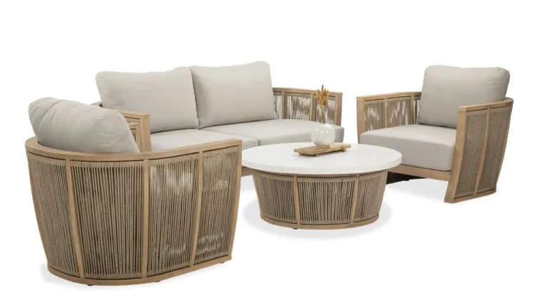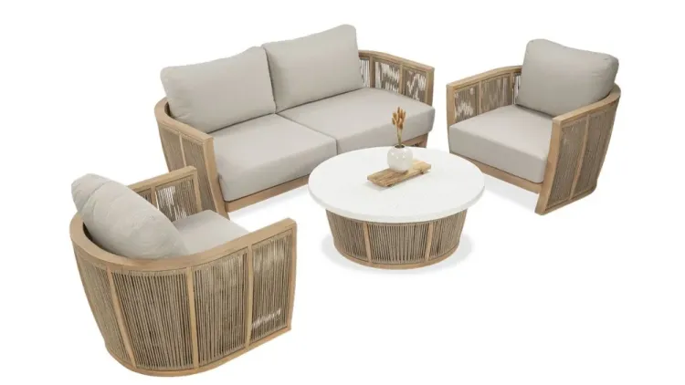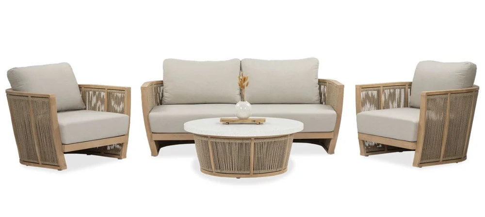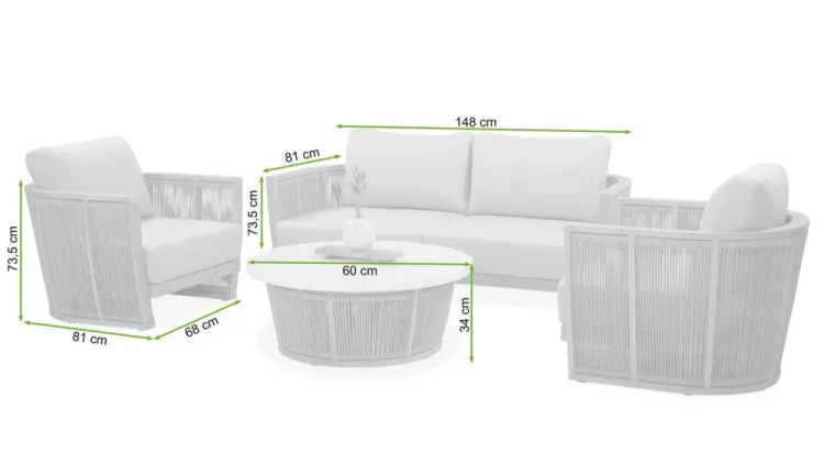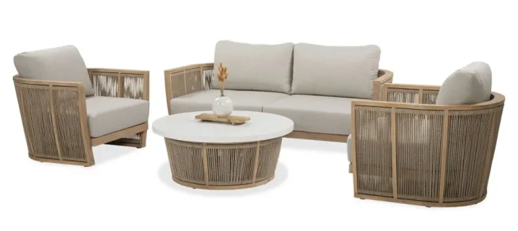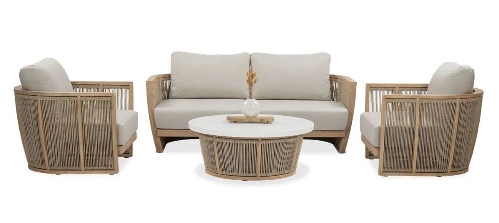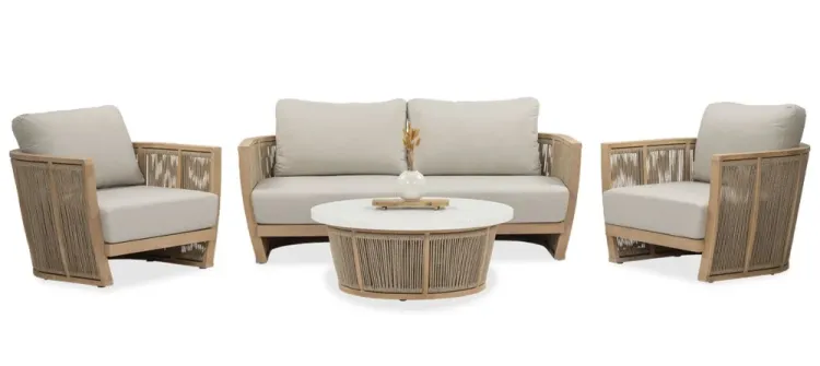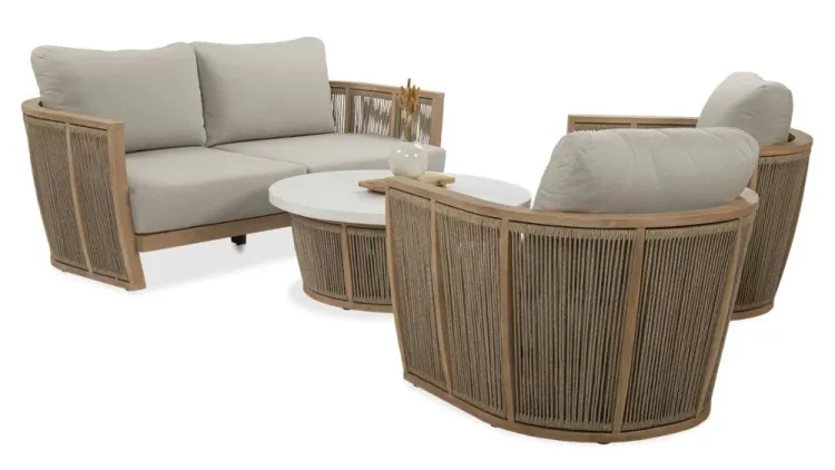 Откройте для себя новое измерение элегантности и комфорта в своем саду благодаря деревянной садовой мебели COLLINS Caffe - Furrore. Этот набор – квинтэссенция роскоши, которая идеально впишется в любой ландшафт, придав ему неповторимый шарм и изысканный стиль. Набор состоит из дизайнерского дивана размером 148х81х73,5 см и двух кресел с подушками 81х68х73,5 см, которые подарят вам незабываемые моменты отдыха на природе. Нежная бежевая льняная ткань в сочетании с натуральной веревкой создают гармоничную композицию, которая перенесет вас в мир покоя и уюта. Все это дополняется стильным журнальным столиком диаметром 60 см и поразительной цементной столешницей толщиной 4 см, что обеспечивает стабильность и элегантность. Древесина эвкалипта, из которой изготовлена мебель, гарантирует не только уникальный внешний вид, но и долговечность и устойчивость к погодным условиям. Это инвестиция, которая будет радовать ваш глаз и дарить незабываемые моменты отдыха на долгие годы. Выберите COLLINS Caffe Wooden Garden Furniture – Furrore и создайте свой собственный оазис покоя и элегантности в окружении природы. Позвольте себе увлечься видением роскоши и комфорта, которые сделают ваш сад местом, где вы захотите проводить каждую свободную минуту. Помните! Чтобы деревянную мебель можно было безопасно использовать на улице, ее необходимо правильно подготовить. Таким лечением является импрегнация. Он предусматривает нанесение на мебель специального средства, защищающего мебель от контакта с влагой, а значит, от разрушения или деформации. Еще один способ оградить деревянное оборудование от погодных условий – смазать его маслом. В зависимости от того, сколько древесины используется, ее рекомендуется смазывать не реже одного раза в год. Дополнительно также следует защитить мебель чехлом. Хотим обратить ваше внимание на неповторимую красоту и естественность деревянной мебели. Следует помнить, что дерево – живой материал, дышащий. Благодаря этому он привносит свою аутентичную атмосферу в окружение. Однако со временем он может претерпеть незначительные изменения, такие как легкие трещины или изменение оттенка через солнечный свет. Это естественный процесс, подчеркивающий его уникальность.