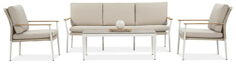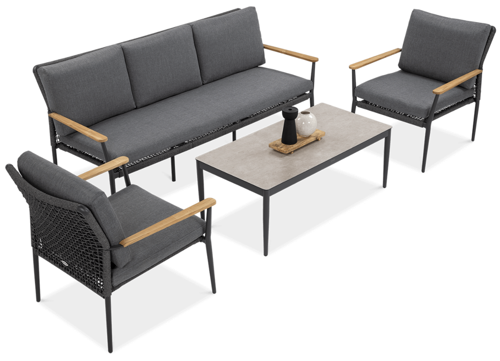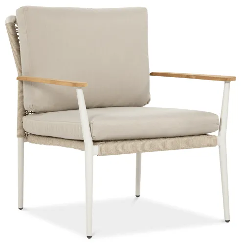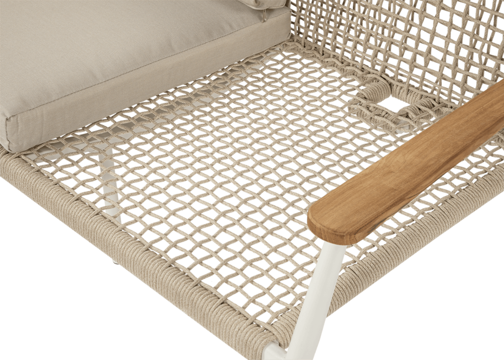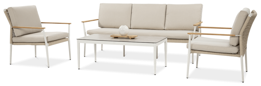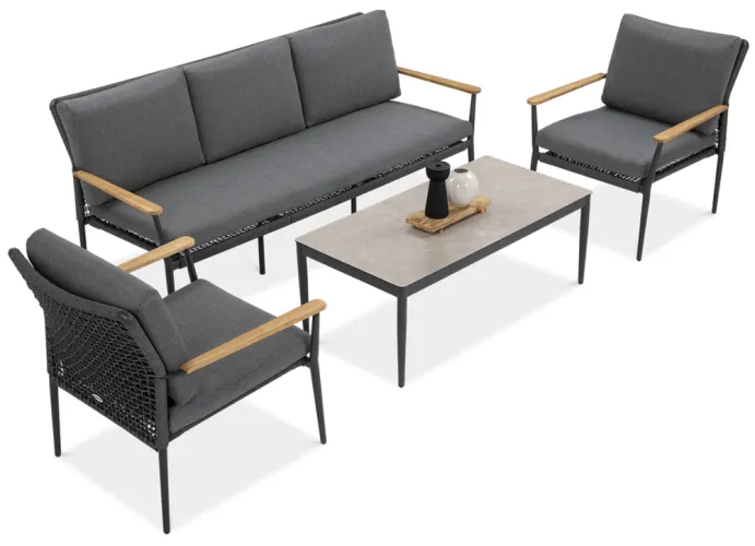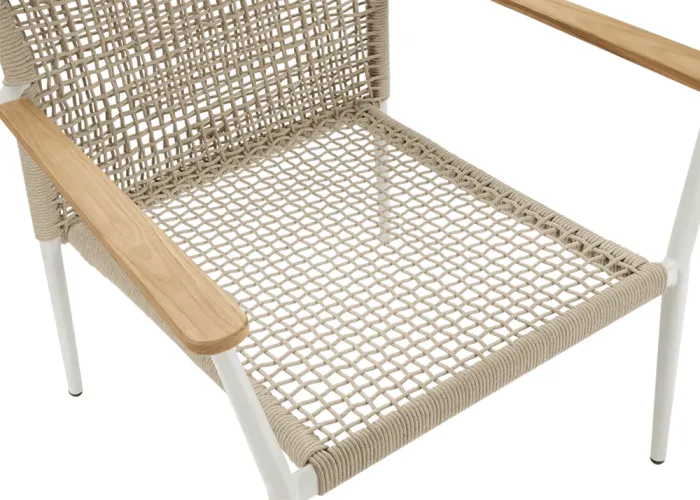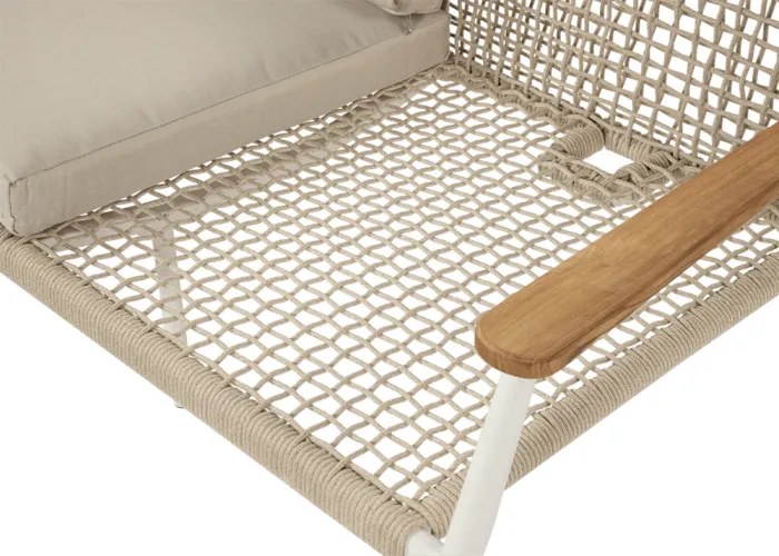 Комплект мебели для отдыха Furrore LUNA CAFFE – идеальное решение для людей, которые ищут качественный и роскошный отдых. Каждый элемент набора тщательно разработан, чтобы создать неповторимую атмосферу и обеспечить максимальный комфорт. В комплект входит 3-местный диван размером 196,5 х 82 х(В)85 см и два кресла размером 76,5 х 82 х(В) 85 см. В набор также входит стол размером 120 х 60 х(В) 45 см. Конструкция мебели изготовлена из прочного алюминия, который был тщательно оплетен высококачественной веревкой, создавая уникальный вид. Подлокотники из тикового дерева придают элегантность и тепло, создавая гармоничную композицию с остальной мебелью. Столешница толщиной 5 см покрыта прочным керамическим стеклом, которое не только выглядит стильно, но также чрезвычайно практично и легко в уходе. Подушки сиденья имеют толщину 8 см, а спинки 12 см, что обеспечивает комфорт во время долгих часов отдыха. Наволочки изготовлены из высококачественного вспененного полиэстера, что придает мебели элегантный вид. Наволочки оснащены молниями, что облегчает их чистку и уход. Подушки наполнены пеной и волокном, что обеспечивает необходимую поддержку и комфорт. Комплект мебели Furrore LUNA CAFFE Light Beige – идеальное сочетание функциональности, комфорта и элегантности. Бренд FURRORE обеспечивает уникальный вид и уникальный опыт отдыха в вашем саду.
