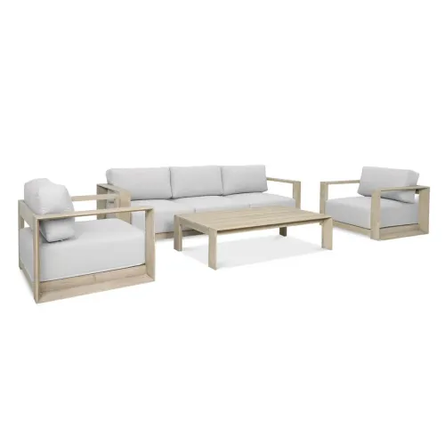 Набор садовой мебели ROYAL Caffe – Furrore сочетает в себе элегантность, долговечность и комфорт. Идеально подходящий для вашего сада, террасы или патио, этот набор станет центром вашего внешнего пространства. Комплект состоит из дивана, двух удобных кресел и прямоугольного стола. Диван размером 85х249х58 см с максимальной нагрузкой до 480 кг обеспечивает комфортное размещение трех человек. Сидения размером 85 x 99 x 58 см с максимальной нагрузкой до 160 кг каждое обеспечивают отличную поддержку и комфорт. Прямоугольный стол размером 82,5х140х35 см идеально подходит для подачи кофе, закусок или размещения декораций. Все элементы набора изготовлены из древесины акации, которая славится своей высокой крепостью и естественной эстетичностью. Светло-серые подушки, изготовленные из 260 г полиэстера, не только элегантны, но и устойчивы к погодным условиям и легко чистятся. Толстые удобные подушки (28 см для спинки и 26 см для сидения) наполнены смесью волокна, волокнистого мата и пены D25, что обеспечивает исключительный комфорт сиденья. Подушки оснащены молниями и липучками, что позволяет их легко снимать и чистить. Набор ROYAL Caffe – Furrore является синонимом элегантности и комфорта. Рекомендуется чистить вручную подушки, чтобы сохранить их идеальный внешний вид и долговечность. Инвестируя в этот набор, вы выбираете не только красивый дизайн, но и непревзойденный комфорт и функциональность, которые сделают каждый миг, проведенный на природе, уникальным. Подарите себе немного роскоши в саду с комплектом мебели ROYAL Caffe – Furrore и наслаждайтесь высоким уровнем комфорта. Помните! Чтобы деревянную мебель можно было безопасно использовать на улице, ее необходимо правильно подготовить. Таким лечением является импрегнация. Он предусматривает нанесение на мебель специального средства, защищающего мебель от контакта с влагой, а значит, от разрушения или деформации. Еще один способ оградить деревянное оборудование от погодных условий – смазать его маслом. В зависимости от того, сколько древесины используется, ее рекомендуется смазывать не реже одного раза в год. Дополнительно также следует защитить мебель чехлом. Хотим обратить ваше внимание на неповторимую красоту и естественность деревянной мебели. Следует помнить, что дерево – живой материал, дышащий. Благодаря этому он привносит свою аутентичную атмосферу в окружение. Однако со временем он может претерпеть незначительные изменения, такие как легкие трещины или изменение оттенка через солнечный свет. Это естественный процесс, подчеркивающий его уникальность.