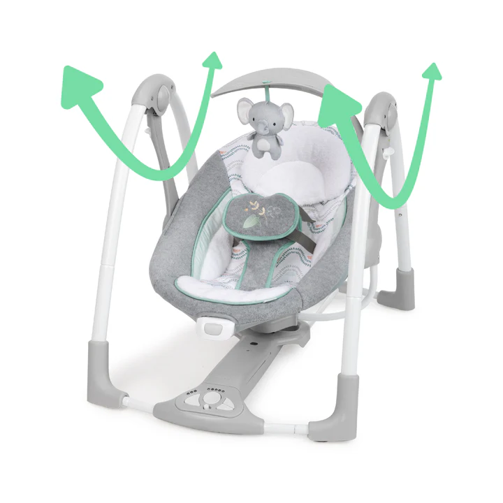 Кресло – качели 2в1 INGENUITY Swell – ваш новорожденный может качаться или сидеть с комфортом с помощью портативных качелей Swell от Ingenuity. Когда ваш ребенок захочет покачаться, автоматическая настройка качелей успокоит и комфортно. Быстро и легко превратите его в стационарное сиденье с помощью нашей безопасной системы EasyLock. В любом режиме ребенок может наслаждаться успокаивающей вибрацией. Эти детские качели, удобные для путешествий, имеют сложную конструкцию, поэтому их можно лежать ровно для удобства хранения и транспортировки. Успокойте своего малыша с помощью 5 настроек качелей, 12 мелодий и 4 звуков природы или развлеките его с помощью плюшевой игрушки-слона. Когда вам нужно зачерпнуть ребенка, наша инновационная игрушка в форме листьев легко отвергается. Обеспечьте движение колебаний и музыку с помощью входящего в комплект USB-кабеля, а батарея 1 C питает вибрационный блок. Когда что-нибудь станет беспорядочным, снимите накладку для сидения и подголовника, которые можно стирать в машине, чтобы их было легче очистить. Благодаря гендерно-нейтральному дизайну и плюшевым тканям эти качели станут прекрасной идеей подарка на вечеринку для мальчика или девочки. Этот компактный автомобиль, который можно взять с собой, готов к поездке, куда угодно.