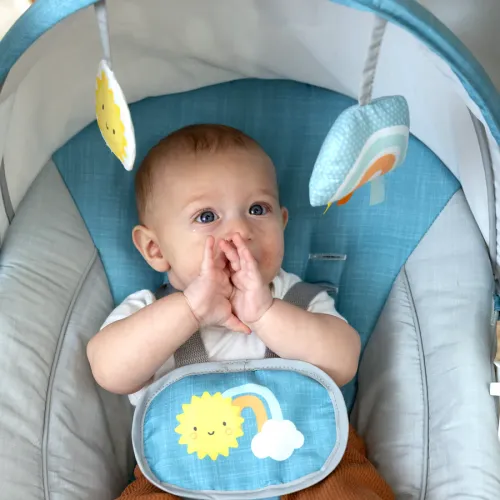 Кресло - качели с капюшоном INGENUITY Sun Valley - простота сочетается с универсальной функциональностью с портативной качелью.Эти компактные качели готовы взять с собой в путешествие и развлекать в пути с 2 игрушками (1 солнышко-морщинка и 1 плюшевая радуга). Эти детские качели оснащены большим полноценным навесом для комфорта вашего ребенка. Качели имеют 6 вариантов скорости и передовую технологию определения веса TrueSpeed с таймером. Ребенку будет комфортно благодаря сиденью с двумя положениями наклона. Съемную накладку сиденья можно стирать в стиральной машине. Развлекайте малыша музыкой из подборки из 8 мелодий. Эта легкая и сложная конструкция качелей имеет встроенную ручку для удобной транспортировки и хранения. Качели работают от батареек для максимальной мобильности (батареи 4 C, не входят в комплект). Держите ребенка безопасно с помощью регулируемых 5-точечных ремней безопасности. . Эти портативные качели являются первоклассным подарком на праздник ребенка!