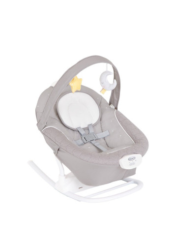 Кресло-качели Graco SOFTSWAY STARLIGHT – неудивительно, что каждый ребенок успокаивается по-разному. Именно поэтому All Ways Soother имеет 16 различных успокаивающих движений – больше всего среди всех качелей Graco®. Воспользуйтесь всеми этими возможностями, чтобы найти идеальную настройку качания, скорости и звука. Во время путешествий по дому или в гостях кресло-качалка удобно превращается в съемные качели с успокаивающими вибрациями.