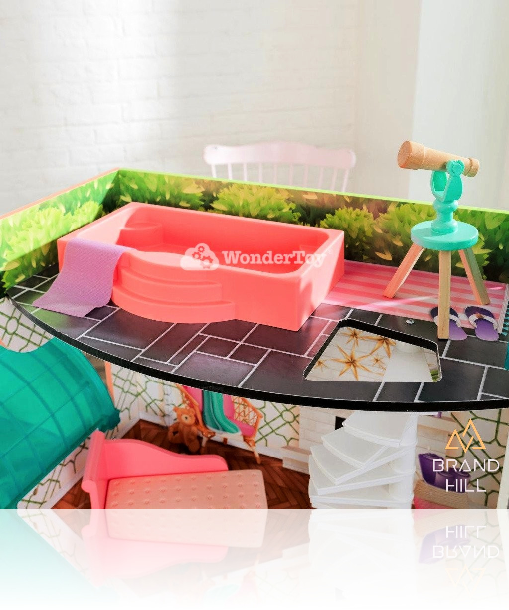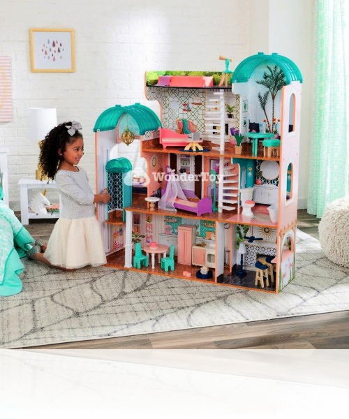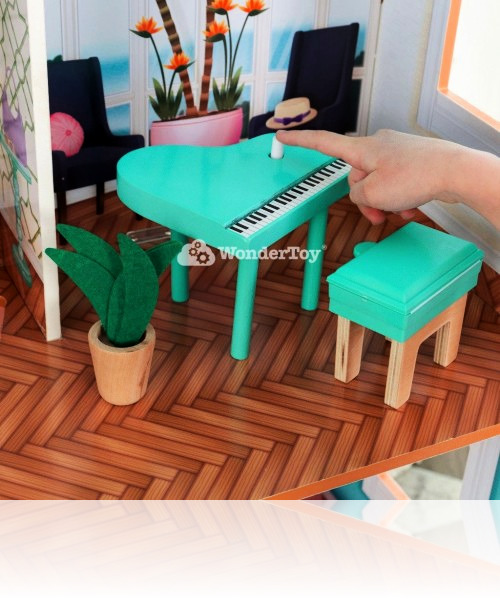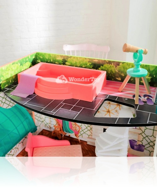 Кукольный домик KidKraft Camila Miami Celebrity 65986 соединил в себе изящество, гламур, экзотику и богатство. Ваш ребенок будет в восторге от этого дома! Типичные цвета для Майами - пастельный, пудровый, оттенки зеленого и синего хорошо сочетаются с окружающими приморской резиденции. Здесь куклы и их домашние животные найдут счастливую и идеальную жизнь.