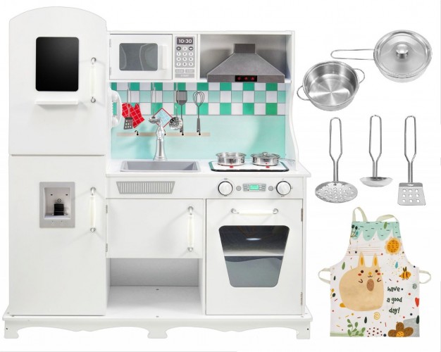 Деревянная кухня Mamabrum XXL + аксессуары - Игрушечная кухня станет воплощением мечты.Подарок который поразит вашего маленького шеф повара, красивая белая кухня размером XXL Многочисленные удобства и детали помогут вам Получить еще больше удовольствия.