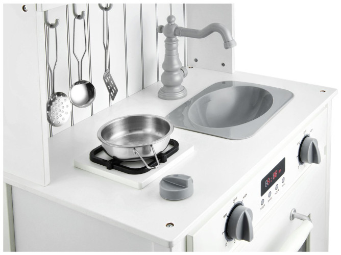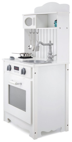 Деревянная кухня Mamabrum WOODEN KITCHEN 133 – ваш ребенок любит помогать вам на кухне? Деревянная кухня станет его мечтой! Подарите ей красивую белую кухню со светодиодной подсветкой, которая смотрится так же, как настоящая. Благодаря своим небольшим размерам кухня максимально интересна для детей! Она выглядит великолепно, а яркие цвета мебели оживят интерьер.