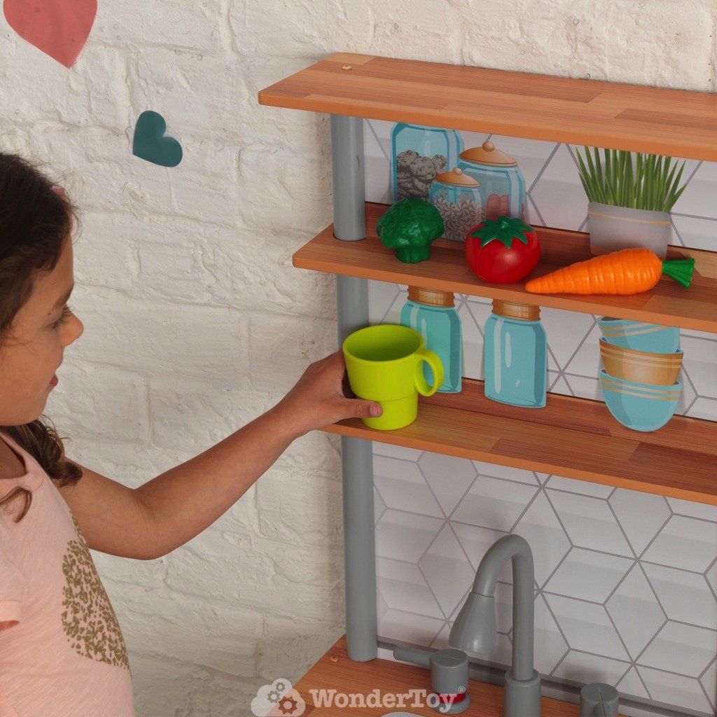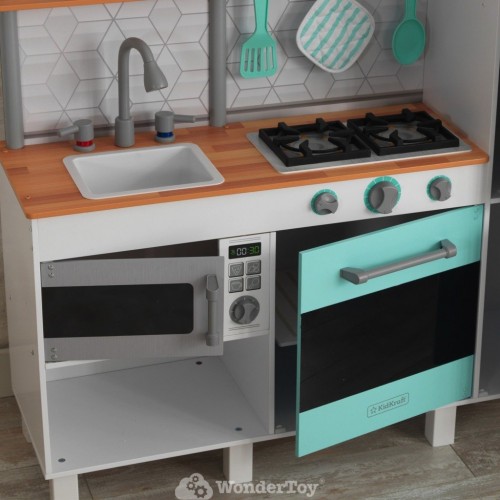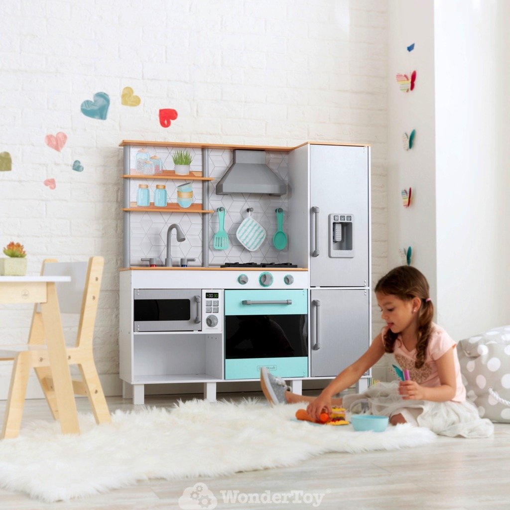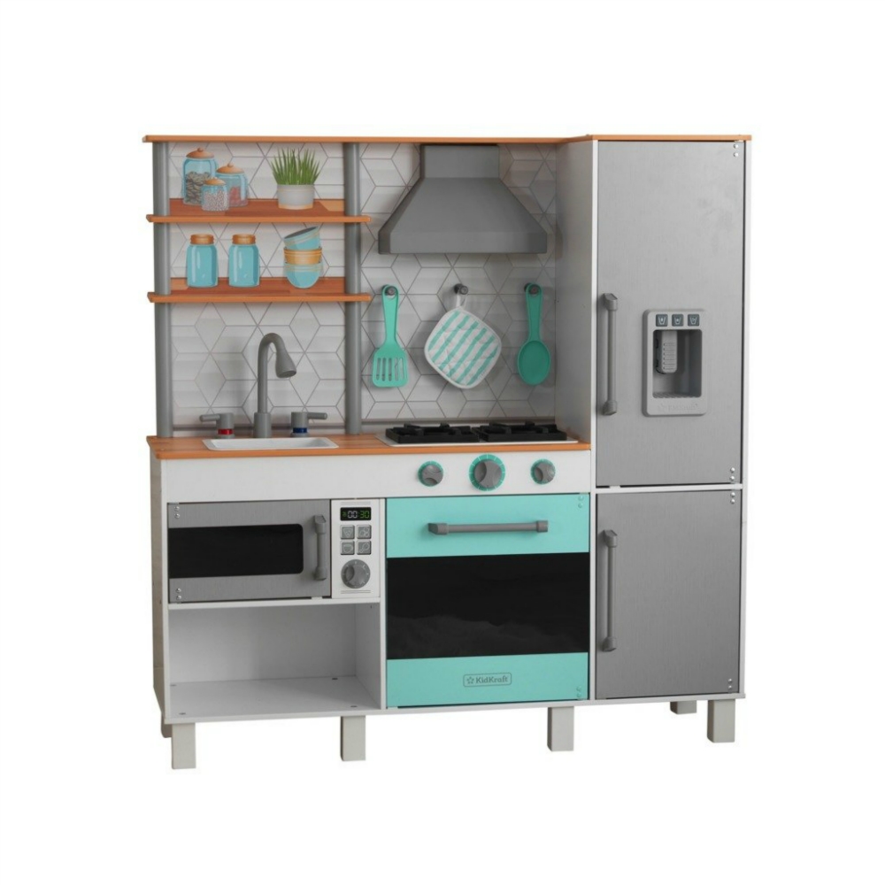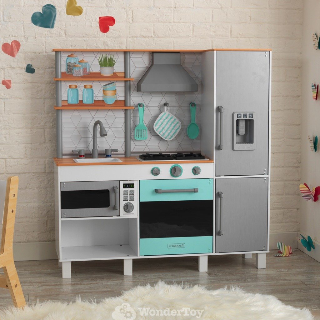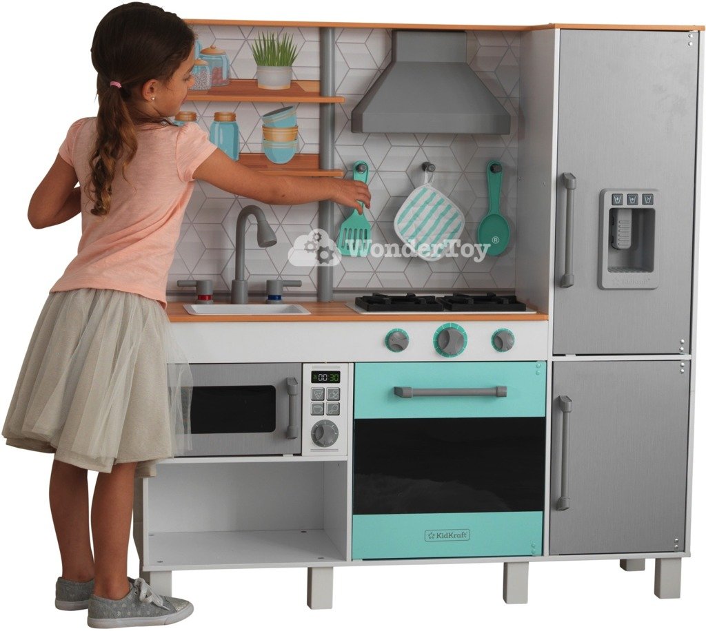 Бренд Kidkraft всегда следует последним тенденциям и на протяжении многих лет является лидером в области инноваций и качества своей продукции. В настоящее время она выводит на рынок серию товаров в современном стиле, приглушенных пастельных тонах, с полным набором аксессуаров. Каждый творческий ребенок любит играть в кулинарию. Деревянная кухня для детей Kidkraft Gourmet Chef Play Kitchen KK53421 воплощает мечты маленьких детей о том, чтобы стать взрослыми. Дети могут приготовить угощение для всей семьи. Юным поварам обязательно понравится современный вид кухни своей мечты!