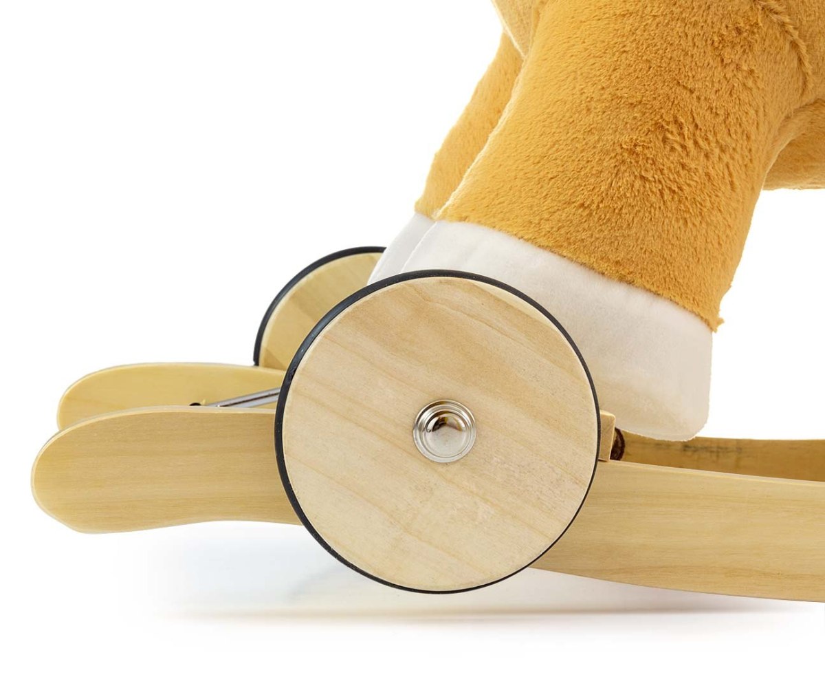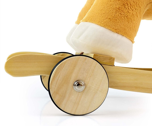 Лошадка с колесиками Milly Mally Polly Light Brown - разработана для самых маленьких детей (12 м+), которым традиционные лошадки-качели великоваты. есть деревянные шесты с подножками и ручками, которые помогут вам удерживать равновесие во время игры, и набор сложных колес, благодаря которым вы за несколько секунд превратите его в превосходное плюшевое транспортное средство. Качалка изготовлена из мягкого и нежного плюшевого материала. и интерактивные ушки. Прижав одно ушко, вы услышите прыжок и ржание лошади, а прикоснувшись к другому, ребенок услышит веселое ржание лошади.