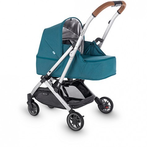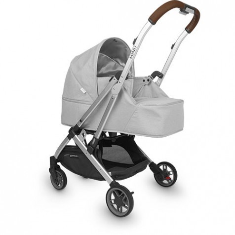 Люлька UPPAbaby MINU - Облегченная люлька для новорожденных коляски UPPAbaby Minu представляет собой ложе с жёстким пластиковым дном и текстильными бортами. Она рассчитана на малышей до 9 кг. Мягкий матрасик, идущий в комплекте, можно стирать в деликатном режиме. Безопасное крепление к шасси гарантируют пять точек фиксации. Нечасто в люльках можно встретить ремни безопасности, но в UPPAbaby Minu они есть – пятиточечные с мягкими плечевыми накладками и возможностью регулировки по высоте.Капюшон имеет огромный выдвижной козырёк из фирменной серебристой ткани с защитой от ультрафиолетовых лучей. В задней части капора находится молния, под которой прячется сетчатое вентиляционное окошко. Фирменный дождевик идеально закрывает маленького пассажира в спальном блоке от ненастья. Накидка на ножки пристегивается молнией, не давая сквознякам проникать к младенцу. Складывается UPPAbaby Minu с установленной люлькой, что невероятно удобно и практично