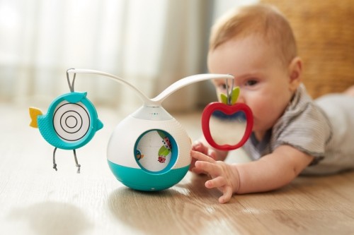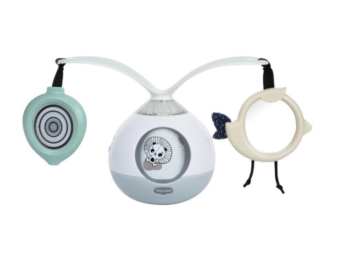 Интерактивная игрушка-карусель Tiny Love - очарованный и увлеченный игрушкой точно будет ваш малыш благодаря данной модели. Игрушка имеет уравновешивающее движение и вращающиеся на 360° ручки, на которых висят доброжелательные фигурки животных, с зеркалом и спиральной графикой, чтобы постоянно вдохновлять ребенка поднимать голову.
