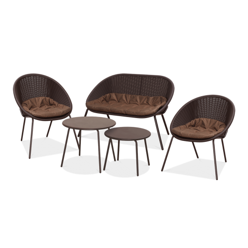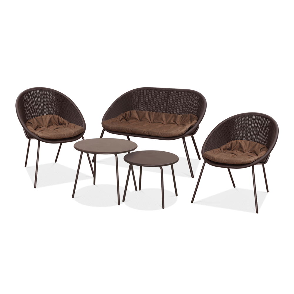 Набор садовой мебели AMBER CAFFE - погрузитесь в атмосферу роскоши и комфорта с садовым набором Focus Garden AMBER CAFFE, который сочетает в себе элегантность, комфорт и долговечность, создавая идеальное место для отдыха на природе. Набор Amber – это не только практичный элемент садового инвентаря, но и яркий акцент дизайнерского стиля, который разнообразит Ваше жилое пространство. Необычайная долговечность и прочность конструкции является основой этого набора. Стальная рама обеспечивает надежную поддержку, гарантируя стабильность даже при интенсивном использовании. Кресла и диван из прочного пластика идеально сочетаются с элегантным металлическим каркасом, создавая гармоничное целое, которое привлекает взгляд и восхищает своей простотой. Их толщина до 9 см позволяет погрузиться в их мягкость, обеспечивая уникальные впечатления во время долгих вечеров, проведённых на природе. Крепление подушек к конструкции мебели с помощью липучки обеспечивает стабильность и надежность, позволяя вам наслаждаться расслаблением, не беспокоясь о том, что они двигаются.В набор входят не только удобные кресла и диван, но и два стильных столика из нержавеющей стали, которые придают элегантности и функциональности всему устройству. Их прочная верхняя часть толщиной 0,8 см обеспечивает не только стабильную опору для ваших напитков и закусок, но и устойчивость к погодным условиям благодаря специальному покрытию. позволяет удобно использовать их большинству пользователей. Кроме того, их практичные размеры и эргономичный дизайн делают их идеальными для использования на террасе, в саду или патио. воздухе, еще более расслабляющим и приятным.