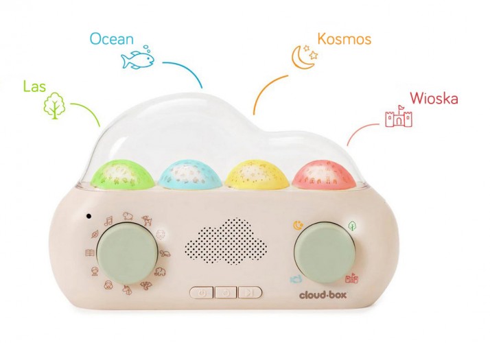 - CloudBox™ воспроизводит 8 расслабляющих мелодий: Мелодия джунглей / Классическая колыбельная / Космический джаз / Мелодия Клер де Лун / Гавайская мелодия / Сон дельфина / Танец феи / капли дождя.