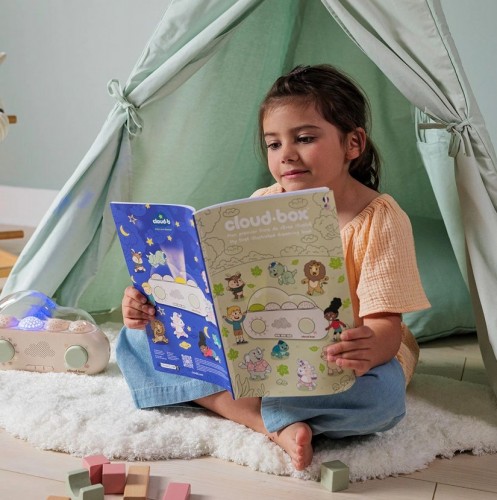 Музыкальный проектор со сказками Cloud b CloudBox - для рассказа историй, как bq сочетает в себе звуковые и световые проекции! CloudBox™ рассказывает 36 волшебных историй о 9 персонажах с очень разными характерами. персонажей - отправляются до 4 светлых миров, таких как лес, океан, космос или деревня, чтобы узнать о том, как делиться, исследовать мир. CloudBox™ может использоваться детьми от 0 до 8 лет. В комплект входит иллюстрированная книга-рассказ.