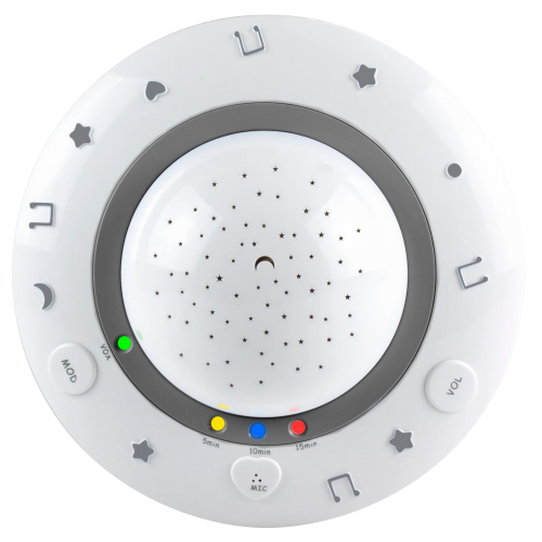 Ночник-проектор ALECTO BC-125GS - тихая музыка и красивые картинки дарят уют и спокойствие. BC-125GS - это детский проектор, который проектирует красивые и красочные изображения на потолок детской комнаты, в то время как по комнате раздаются тихие колыбельные. Как только вы включаете детский проектор, он начинает показывать изображения и воспроизводить песни. Ваш ребенок легко и быстро засыпает? Выберите время воспроизведения пять минут. Но вы также можете выбрать 10 минут или 15 минут, если это необходимо. Как только время игры истекает, большинство малышей быстро засыпают. Если ваш ребенок не спит по истечении этого времени, BC-125GS подхватит звуки и начнет играть снова, чтобы укачать вашего ребенка. Если ваш ребенок позже заснул глубоким сном, вы можете полностью выключить детский проектор. Alecto является лидером на рынке Бенилюкса, когда речь идет о радионянях. Ни один бренд не пользуется большей популярностью среди молодых родителей. При разработке BC-125GS мы опирались на наши знания о радионянях. С Alecto вы выбираете хорошо продуманный и удобный в использовании продукт высокого качества.