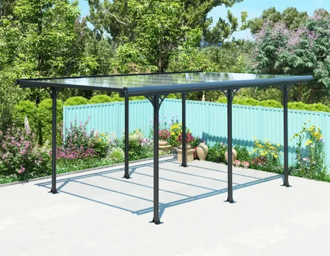 Пергола HARDMAISTER MONTANA 3,1x5m - простая в установке поможет вам защитить их от дождя, снега и чрезмерного солнечного света. Навес для автомобиля Montana – это простое покрытие для крыши, которое вы можете установить в своем саду самостоятельно. В упаковке вы найдете все необходимые элементы и подробную инструкцию. Нейтральный стиль позволяет легко вписать его в любой сюжет. Он идеально подходит для парковки под ним автомобиля, мотоцикла, велосипеда или транспортного средства для отдыха, но также можно использовать как садовую крышу над зоной отдыха. Высота 205 см позволяет легко передвигаться под ним, поэтому его можно использовать разными способами. Каркас укрытия Montana изготовлен из антикоррозионного алюминия. Благодаря этому конструкция прочна, устойчива к погодным условиям и проста в обслуживании. Кровля состоит из легких, но прочных поликарбонатных панелей, которые защищают от осадков и УФ-излучения. Все элементы полностью герметичны, а благодаря водосточной системе вам не придется беспокоиться об отводе воды. Опорные стойки регулируются: в верхних балках есть пазы, позволяющие перемещать их как вдоль, так и поперек крыши. Это позволяет размещать столбы в зависимости от потребностей и возможностей данного пространства. Это выбор на годы и способ повысить функциональность домашнего пространства.