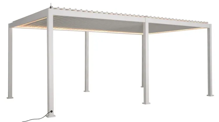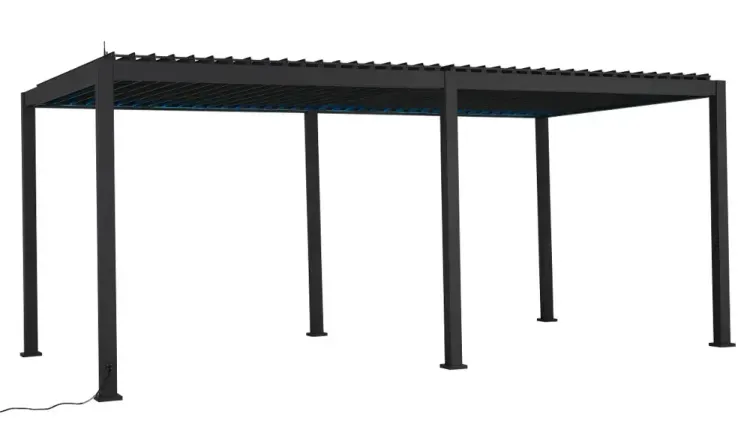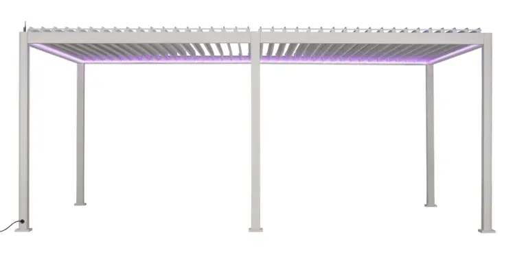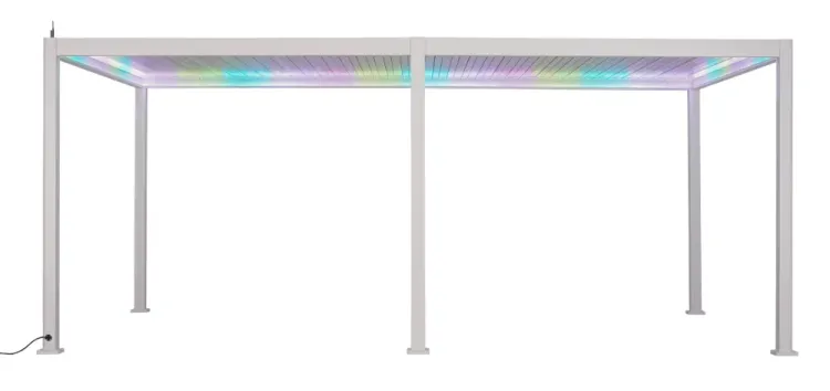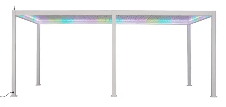 - Электронная пергола предлагает 7 различных цветов освещения, которые можно изменять с помощью пульта дистанционного управления.