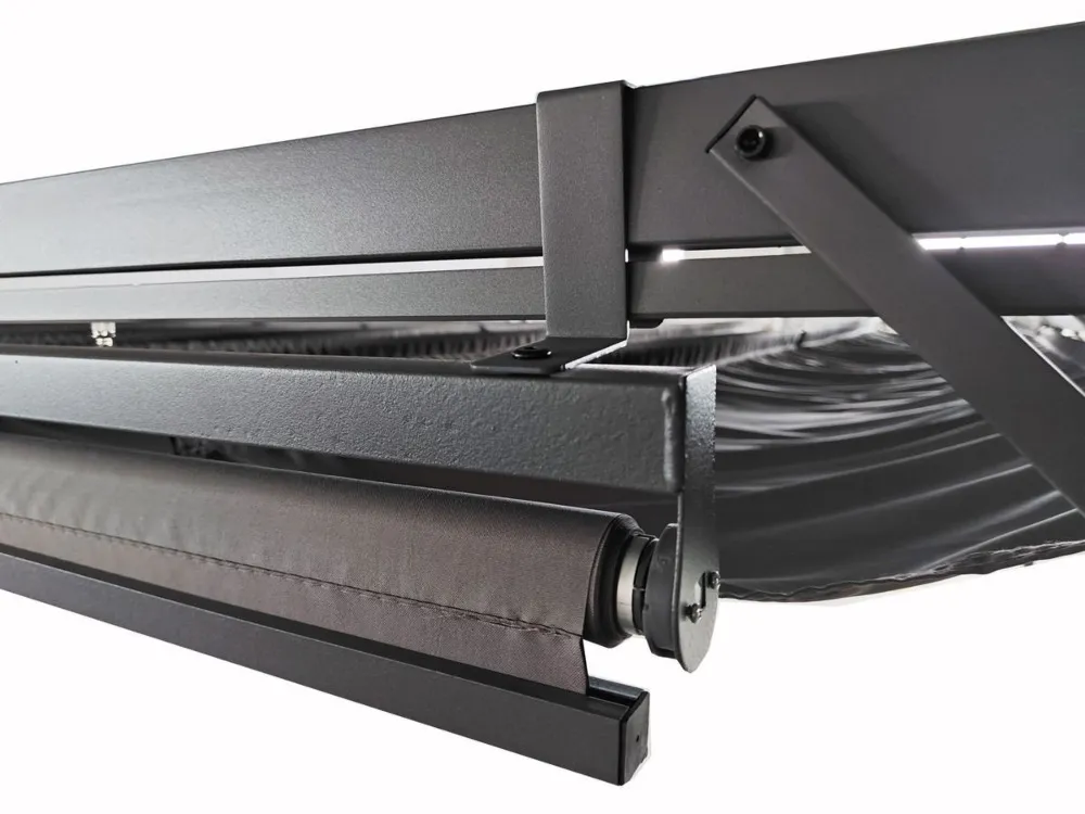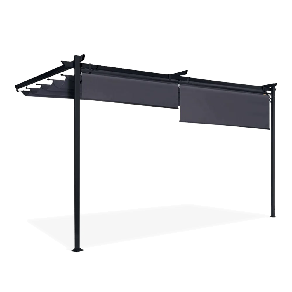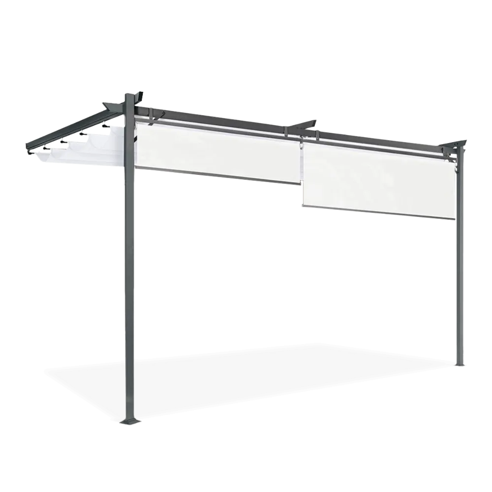 Пергола террасная пристенная с раздвижным накрытием HARDMAISTER SPRINT WALL PLUS 4х2,7м - это элегантное сооружение не только придаст шарму вашему окружению, но и создаст уникальное пространство для отдыха на природе. Пергола отличается прочной стальной конструкцией толщиной 0,9 мм (60х60 мм) и 0,7 мм (60х30 мм), что обеспечивает не только устойчивость, но и долговечность в течение многих сезонов. Независимо от погодных условий вы можете быть уверены, что ваш уголок останется неизменным. Кровля перголы изготовлена из полиэфирной ткани плотностью 300 г/м² с дополнительным ПВХ-покрытием, которое эффективно защищает от ультрафиолетового излучения и делает ее водонепроницаемой. Вам больше не придется беспокоиться о дожде или солнце – пергола обеспечит вам комфорт круглый год. Элегантный антрацитовый цвет конструкции и серый материал на крыше придают перголе современный и стильный вид, идеально вписывающийся в разные стили интерьера и сада. Благодаря этой инвестиции, ваша терраса или сад приобретет уникальный характер. В комплект также входят 2 жалюзи длиной 1,7 м из полиэстеровой ткани плотностью 160 г/м2, которые дополнительно повысят функциональность перголы и обеспечат больше приватности в зоне отдыха. Пусть ваши мечты об идеальной террасе станут реальностью благодаря перголе SPRINT WALL 4x2,7. Выбирайте качество, долговечность, элегантность и комфорт, заказывайте сейчас и превращайте свою террасу или сад в волшебное место для времяпрепровождения с любимыми, романтического ужина или отдыха с любимой книгой. Все это у вас под рукой благодаря перголе Hardmaister.