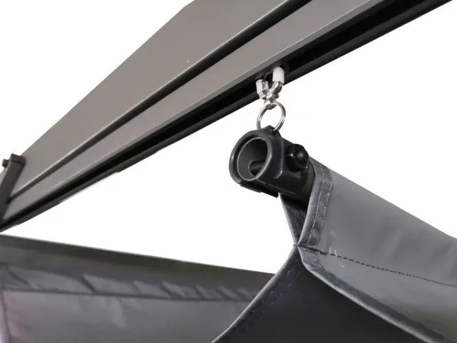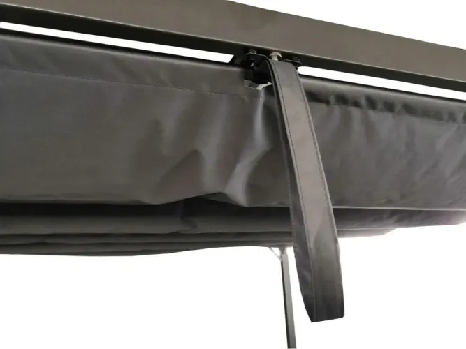 Пергола террасная с раздвижным накрытием HARDMAISTER SPRINT 3x4 - в стильных цветах воплотит ваши мечты об идеальном месте для отдыха на природе. Пергола крепкая и долговечная благодаря своей стальной конструкции с профилями размером 60x60 мм (толщина 0,9 мм) и 60x30 мм (толщина 0,7 мм). Легкие стальные трубы диаметром Φ18 мм (толщина 0,5 мм) придают конструкции элегантности без ущерба для прочности. Кровля перголы изготовлена из высококачественного полиэстера плотностью 300 г/м² с ПВХ-покрытием, которое гарантирует отличную защиту от дождя и ультрафиолетового излучения. Благодаря этому вы можете наслаждаться комфортным отдыхом на террасе вне зависимости от погодных условий. Пергола для террасы SPRINT 3x4 - это гармония эстетического дизайна и функциональности, создавая идеальное место для времяпрепровождения на природе. Добавьте элегантности своему жилому пространству и откройте для себя комфорт отдыха под открытым небом благодаря нашей перголе. Это идеальный способ обеспечить себе уникальное место для отдыха на террасе.