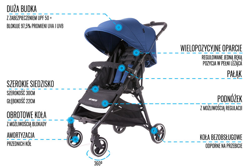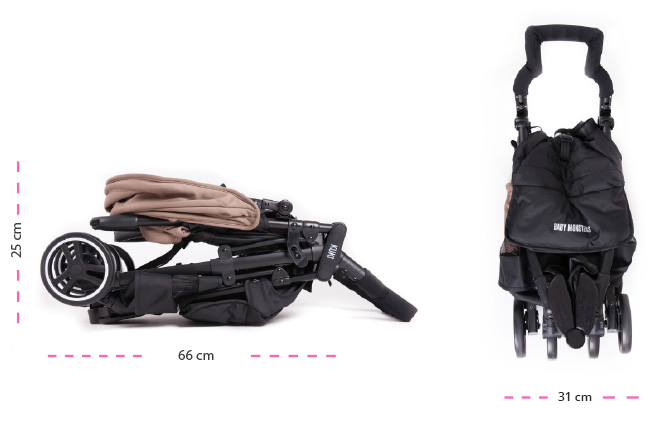 Прогулочная коляска Baby Monsters KUKI 2.0 – это идеальный спутник в путешествиях. Возможность перевозить коляску в специальном рюкзаке, на плечи или тянуть его, как чемодан на колесах, в сочетании с малым весом (5,5 кг) делает переноску Baby Monsters Kuki без проблем. Несмотря на компактные размеры в сложенном виде, коляска остается удобной в использовании благодаря сиденью шириной 30 см и глубиной 22 см. Как и в других колясках Baby Monsters, капюшон изготовлен из полиэстера с фильтром UPF 50+. Прочная конструкция коляски выдерживает детей весом до 22 кг. Коляска Baby Monsters Kuki 2.0 трансформируется в функциональную коляску 2 в 1 благодаря определенным аксессуарам. Это благодаря мягкой трубке, которая позволит ребенку комфортно отдохнуть в положении лежа. Мы также предлагаем транспортный рюкзак, который идеально подходит для путешествий – благодаря ему во время переноски коляски у нас свободны обе руки.