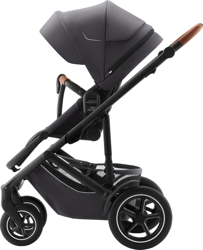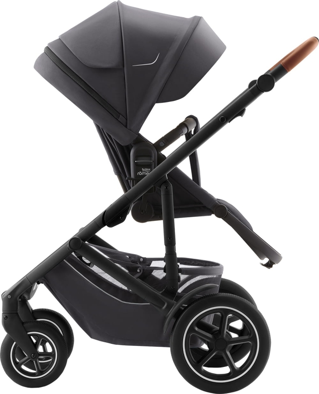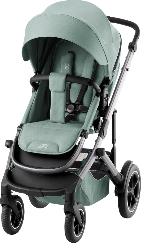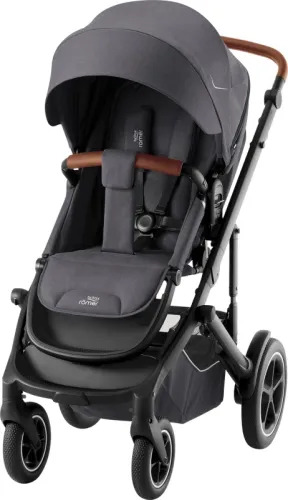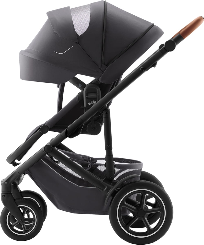 - Колеса подвески тележки Britax Romer Smile 5Z большие и устойчивые к проколам, что делает их пригодными для использования по бездорожью. Кроме того, тормоз коляски разработан таким образом, чтобы быть удобным и простым в использовании независимо от типа обуви. В сочетании с тонким дизайном родители получают коляску с городским дизайном и высокой функциональностью, что позволяет ездить по бездорожью.