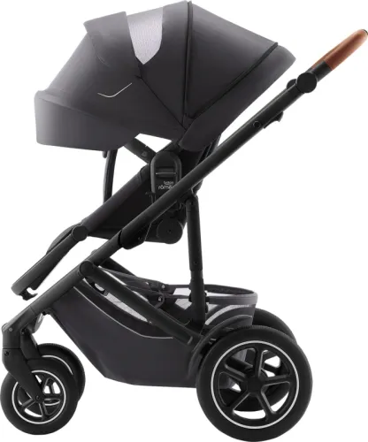 - Коляска имеет структуру, основанную на системе, позволяющей крепить трубку и автокресло. Благодаря этому коляску Britax Romer Smile 5Z можно использовать разнообразно, для скорых поездок по городу и длительных прогулок, для детей от рождения до 4 лет.