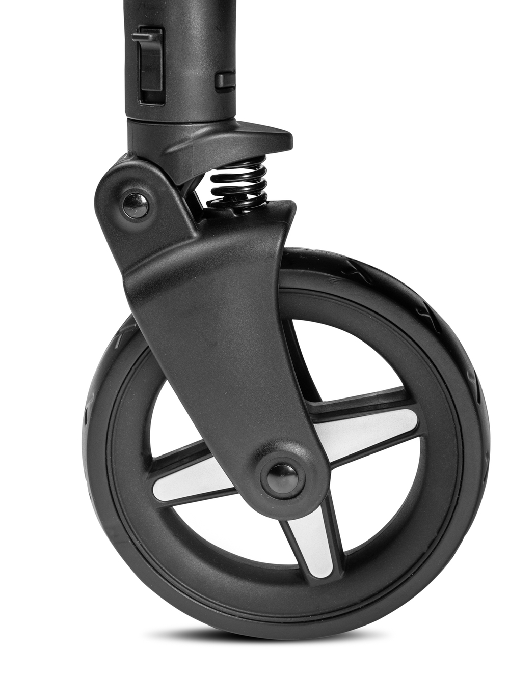 - передние пенопластовые колеса диаметром 18 см с амортизацией и возможностью блокировки