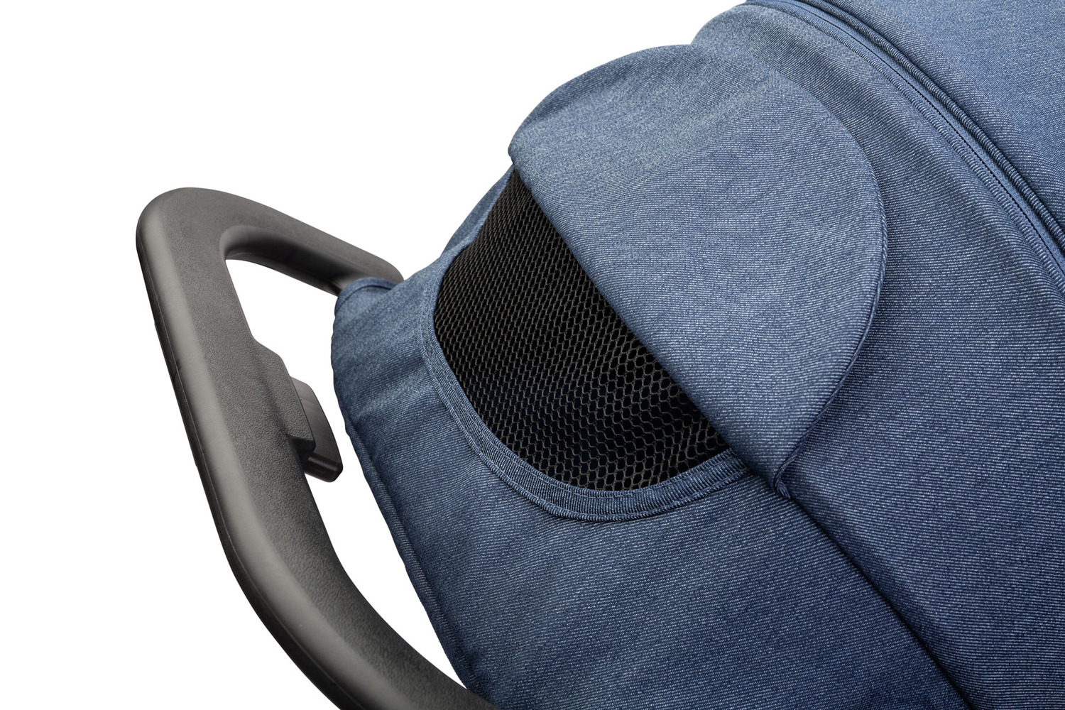 - удлиненный капюшон защищает от ветра и солнца, а дополнительное окошко позволяет присматривать за ребенком.