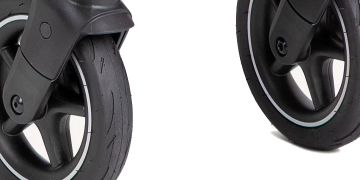 - колеса, що не потребують обслуговування- це поєднання піни (всередині) і гуми (зовні). Завдяки цьому коляска легка і безпечна в керуванні - вона дуже маневрена і добре збалансована.
