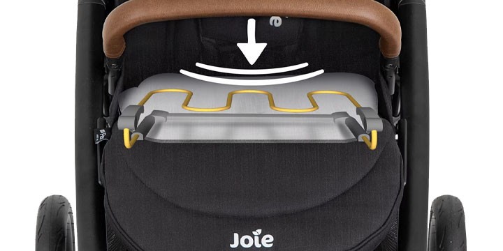 - Joie Mytrax Pro має 4-ступеневе регулювання спинки. Завдяки цьому малюк може подорожувати в зручному положенні, незалежно від того, чи припадає прогулянка на час сну чи гри.
