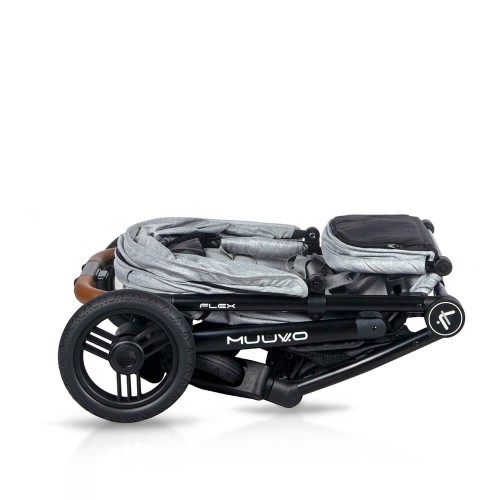Прогулочная коляска MUUVO Flex - универсальный вездеход на больших полиуретанивих колесах и крепкой алюминиевой раме. Коляска отлично подходит для бездорожья, имеет хорошую амортизацию спереди, богатую комплектацию и удобную систему складывания одной рукой.